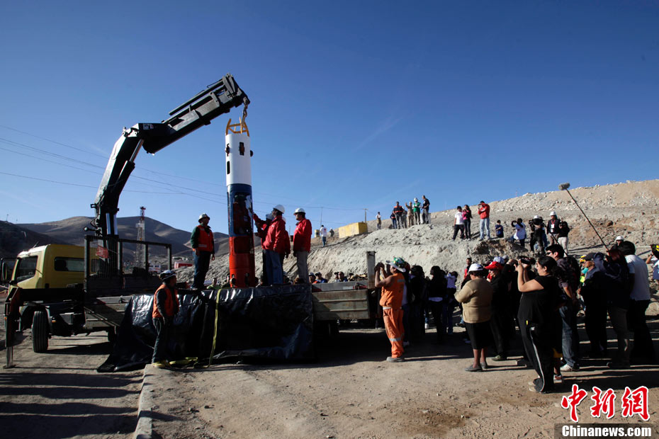 據(jù)美國媒體報道,為營救智利33名被困礦工而特別設(shè)計制作的救生艙25日已被運至礦場。另外還有2個備用救生艙也將在下周送至礦場,這些救援裝置統(tǒng)一由智利海軍船廠制造。