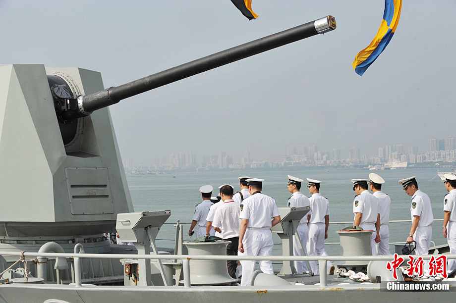 9月26日,應中國人民解放軍海軍邀請,澳大利亞海軍艦隊司令吉爾摩少將率海軍“瓦拉蒙加”號護衛(wèi)艦抵達湛江某軍港進行友好訪問,南海艦隊舉行了隆重的歡迎儀式。中新社記者 陳文 攝