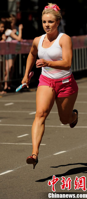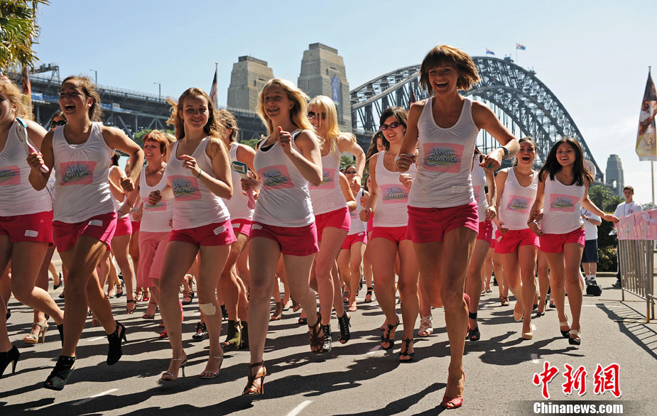 9月28日,澳大利亞悉尼舉行了一場“高跟鞋接力賽”。參賽選手們將穿至少3英寸高跟鞋,進(jìn)行4×100米接力賽跑,這項活動是為了幫助乳癌患者治療募集基金。