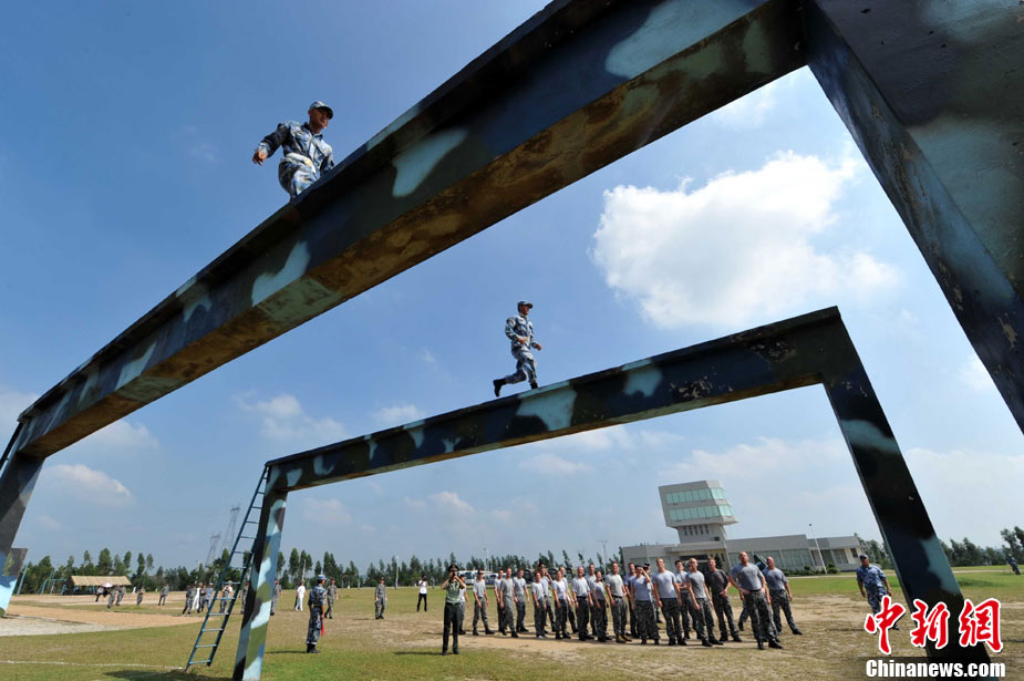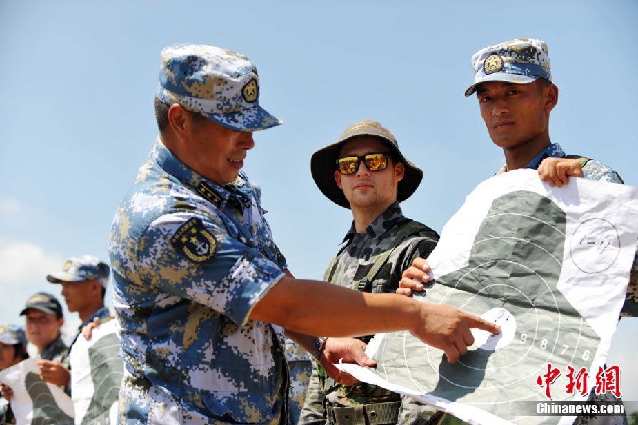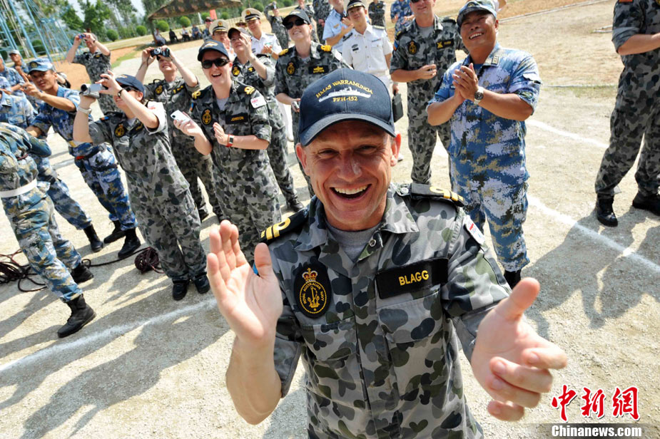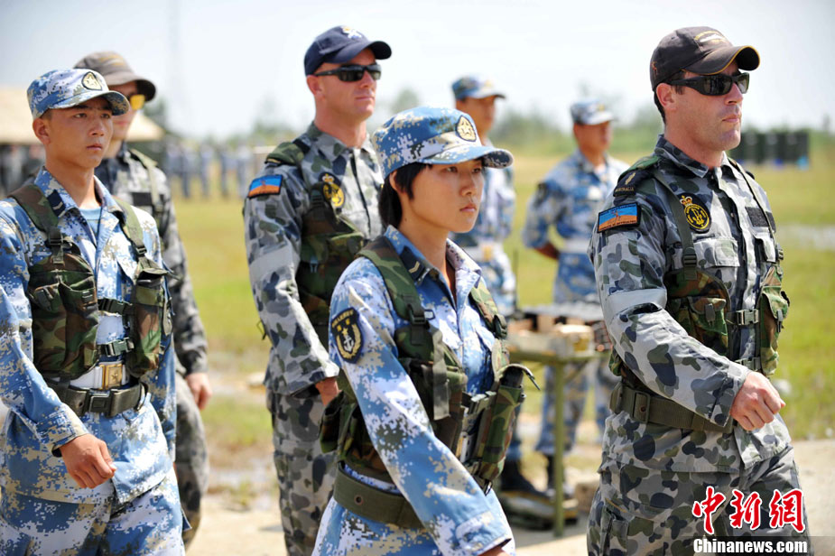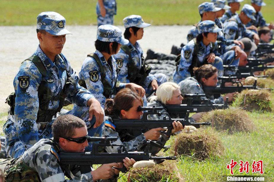 9月29日,中國(guó)南海艦隊(duì)某陸戰(zhàn)隊(duì)與應(yīng)邀來(lái)華訪(fǎng)問(wèn)的澳大利亞海軍陸戰(zhàn)隊(duì)在湛江某部訓(xùn)練場(chǎng)舉行聯(lián)合訓(xùn)練,包括攀登、兩棲障礙、射擊等。中新社記者 陳文 攝