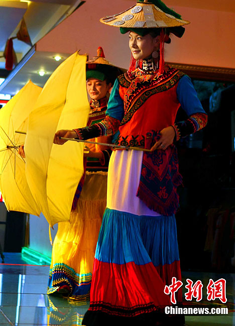 西昌市一家彝族特色餐館,9月29日表演民族舞蹈、展示民族服飾,表達(dá)民族情懷,祝福中國第二顆繞月探測(cè)衛(wèi)星——“嫦娥二號(hào)”圓滿升空。據(jù)悉,“嫦娥二號(hào)”任務(wù)擬定于9月30日開始加注火箭推進(jìn)劑,10月1日至3日擇機(jī)實(shí)施衛(wèi)星發(fā)射。中新社記者 宋吉河 攝
