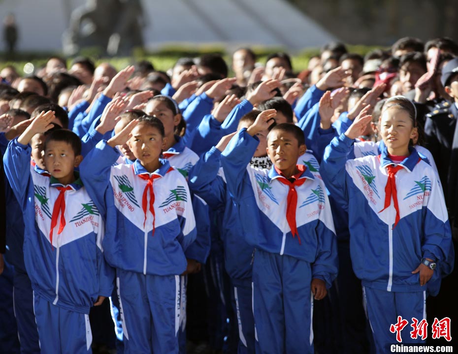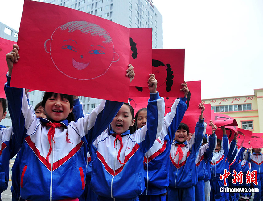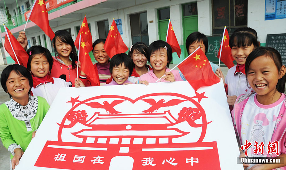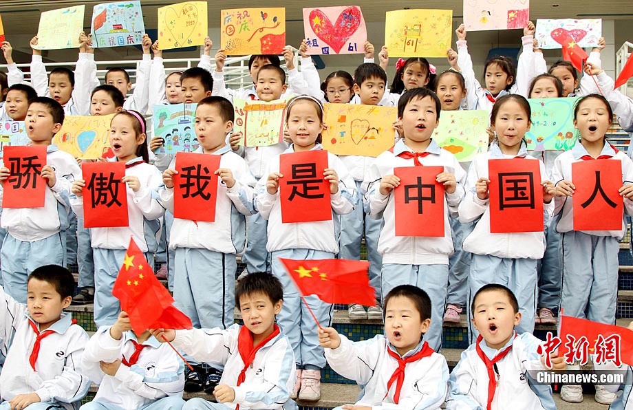 9月27日,一場以“我驕傲,我是中國人”為主題的國慶61周年誦讀繪畫賽活動在蘇州市一所小學校舉行,該校百余名一、二年級學生以集體誦讀和繪畫展示等形式,表達對偉大的祖國贊美與衷心祝福。王建中 攝 圖片來源:cnsphoto