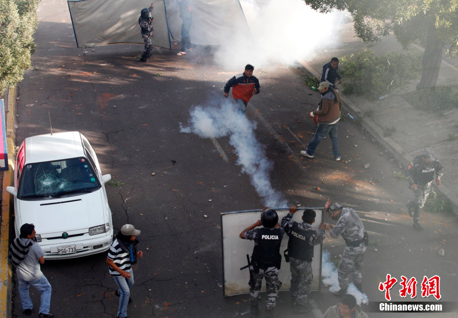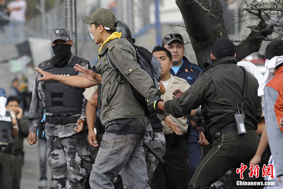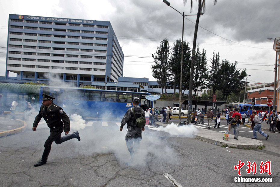 厄瓜多爾當(dāng)?shù)貢r(shí)間9月30日爆發(fā)嚴(yán)重騷亂,目前,厄瓜多爾局勢十分緊張,抗議者一度控制首都基多的國際機(jī)場,并試圖攻占國會(huì)大廈。在厄瓜多爾的其他地方也出現(xiàn)嚴(yán)重騷亂,多個(gè)城市間的交通被切斷。圖為在厄瓜多爾首都基多街頭,一名警官參加示威游行。