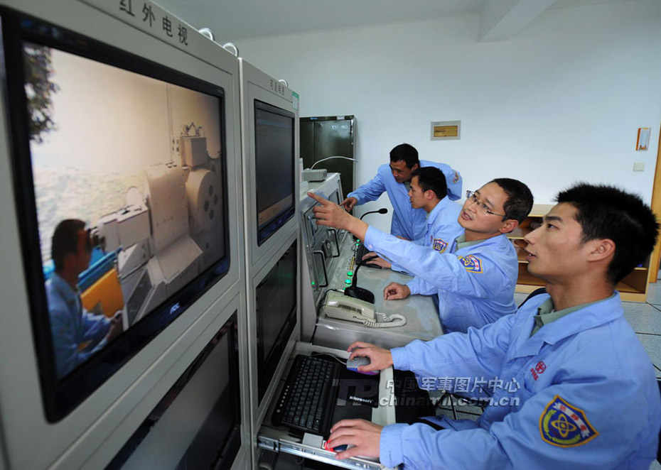 觀測(cè)人員進(jìn)行設(shè)備調(diào)試。目前,各大系統(tǒng)產(chǎn)品和技術(shù)狀態(tài)良好,嫦娥二號(hào)發(fā)射前準(zhǔn)備就緒。 圖片來源:中國(guó)軍網(wǎng) 王傳順 攝