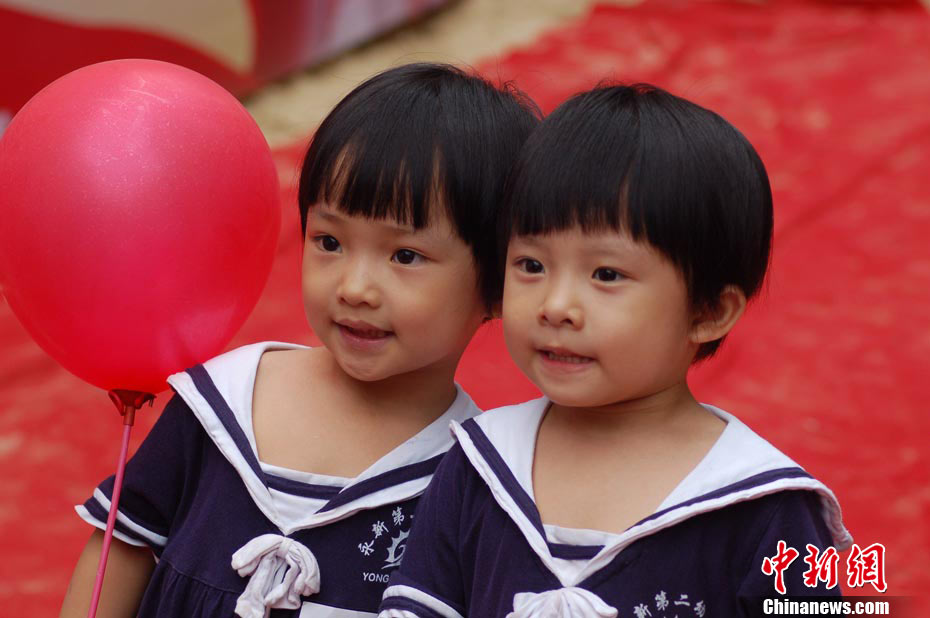 10月1日,國慶長假第一日,70多對雙胞胎、三胞胎歡聚廣西南寧市人民公園,參加“南寧首屆雙胞胎歡樂節(jié)”,比拼相似度與默契程度。參加活動(dòng)的雙胞胎有長得酷似李宇春、周迅、大小S等明星,引來眾多好奇目光。中新社記者 劉萬強(qiáng) 攝
