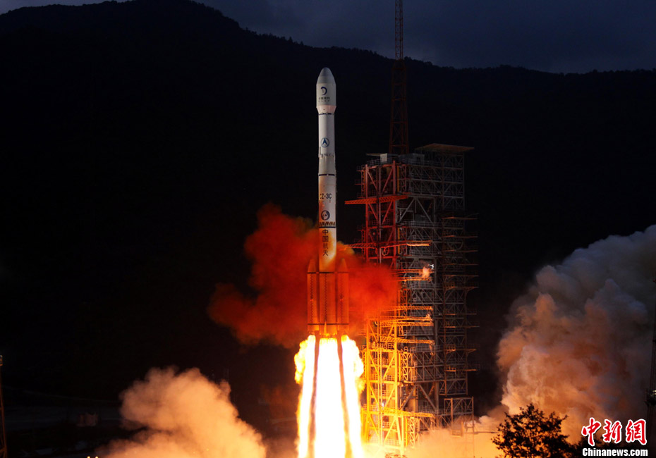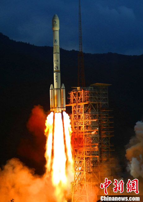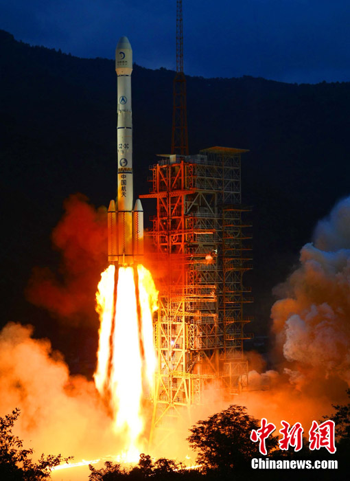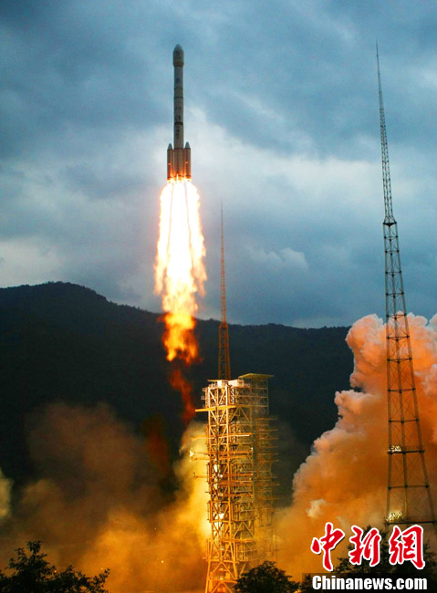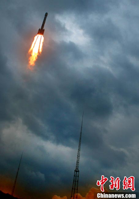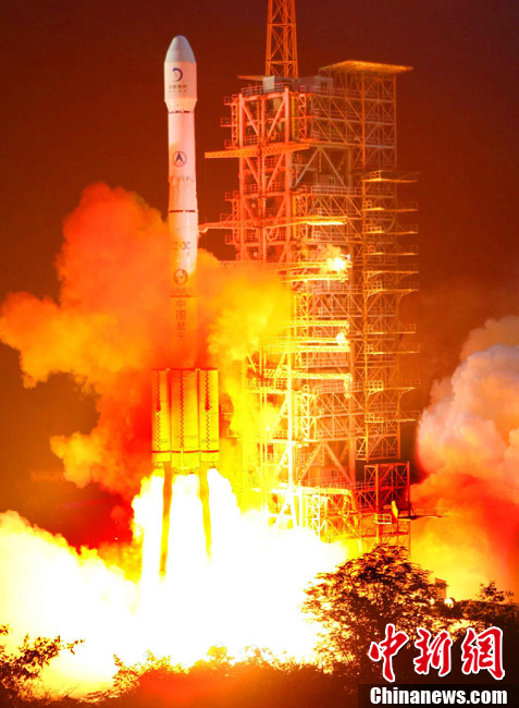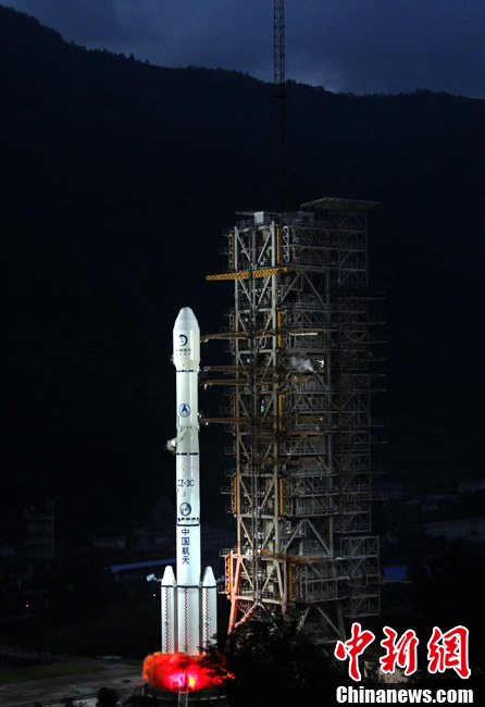 2010年10月1日18時59分57秒,中國探月工程二期的技術先導星“嫦娥二號”在西昌衛(wèi)星發(fā)射中心由“長征三號丙”運載火箭發(fā)射升空。中新社記者 宋吉河 攝