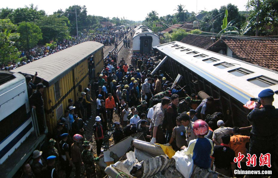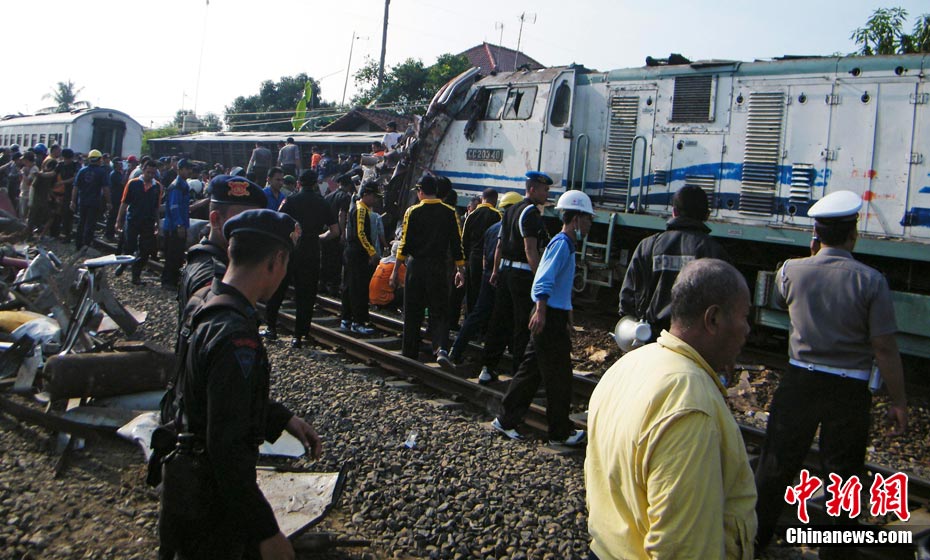 印尼中爪哇省2號(hào)發(fā)生火車(chē)相撞事故,至少已造成33人死亡。 事發(fā)在中爪哇北岸的珀塔魯坎,一列行駛中的列車(chē),于凌晨約3點(diǎn)鐘,撞向一列停在車(chē)站內(nèi)的列車(chē),當(dāng)時(shí)大部分人都在睡眠中,因此事故造成嚴(yán)重傷亡。