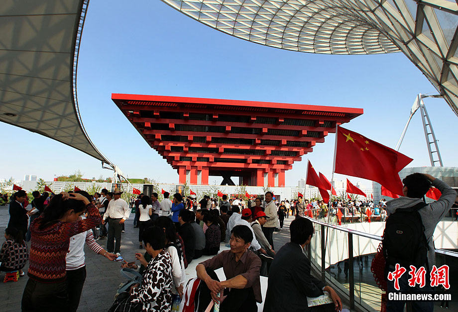 10月4日,上海風和日麗,世博會入園人數(shù)持續(xù)上升。黃金周前三天,上海累計接待觀光游客407萬人次,幾乎相當于往年整個黃金周的接待量。目前,上海世博園區(qū)連續(xù)三天已接待游客超過100萬人。中新社記者 任晨鳴 攝