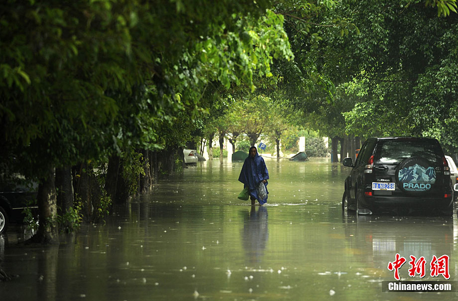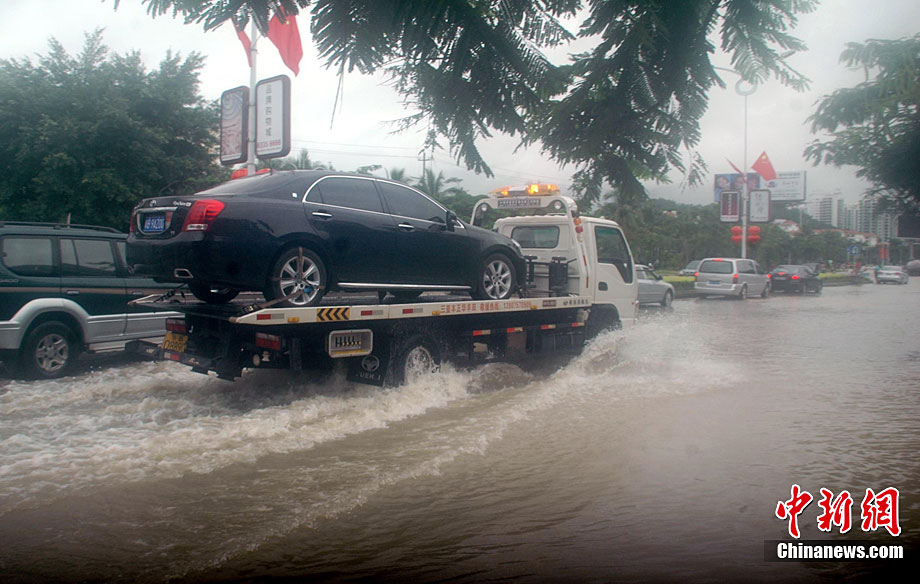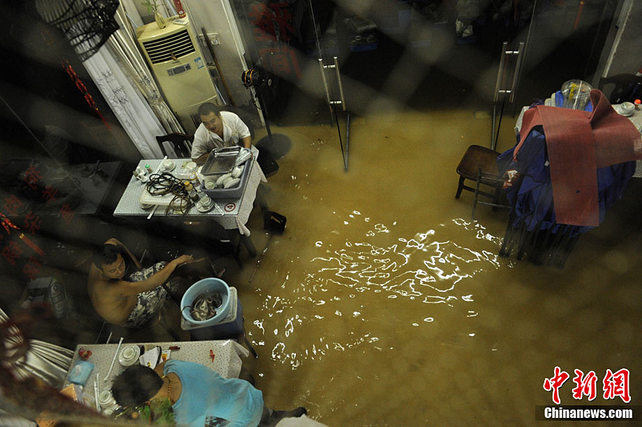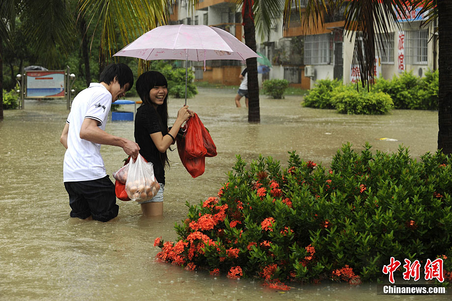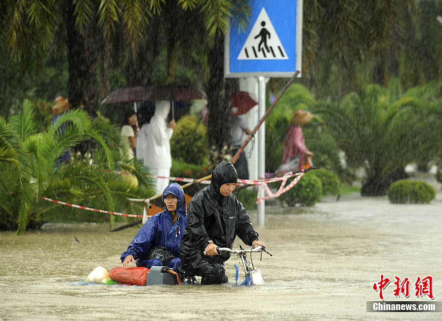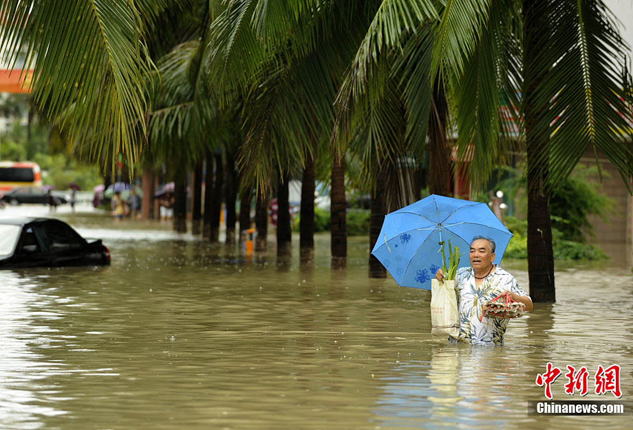 10月5日,持續(xù)五天的暴雨導(dǎo)致三亞多個(gè)小區(qū)嚴(yán)重積水。不少市民家中進(jìn)水,商戶紛紛歇業(yè)避雨。徐勤濤 攝 圖片來(lái)源:cnsphoto