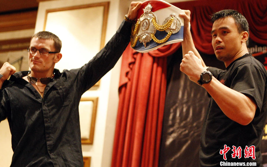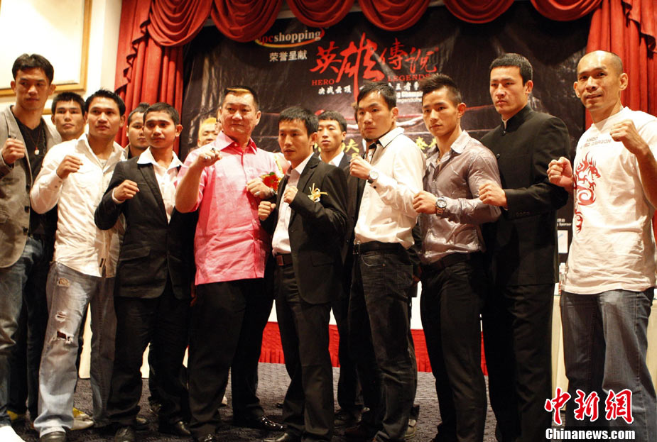 10月7日,“英雄傳說(shuō)-決戰(zhàn)云頂”世界搏擊王者爭(zhēng)霸賽在馬來(lái)西亞吉隆坡舉行賽前發(fā)布會(huì),是次賽事是目前在馬來(lái)西亞規(guī)模最大,規(guī)格最高的職業(yè)搏擊比賽,比賽除了五位泰拳選手和五位中國(guó)選手參加之外,還有來(lái)自日本、美國(guó)以及馬來(lái)西亞共16位拳手參賽。賽事由來(lái)自美國(guó)、日本、菲律賓以及中國(guó)的國(guó)際組織WBC、WCK、K-1的國(guó)際職業(yè)裁判擔(dān)任。10月9日該賽將通過(guò)衛(wèi)星全球直播,中國(guó)亦將有多家電視臺(tái)實(shí)況錄/轉(zhuǎn)播。圖為各國(guó)拳手亮相“英雄傳說(shuō)-決戰(zhàn)云頂”世界搏擊王者爭(zhēng)霸賽賽前發(fā)布會(huì)。 中新社記者 錢(qián)興強(qiáng) 攝