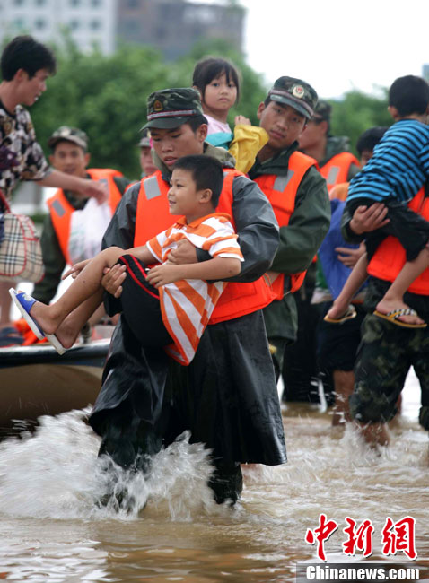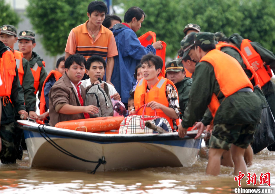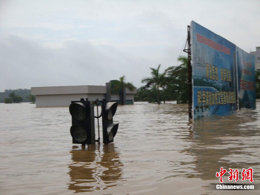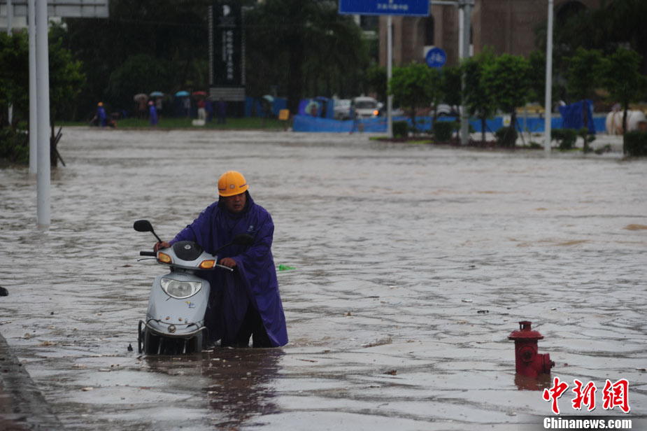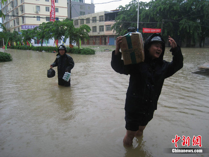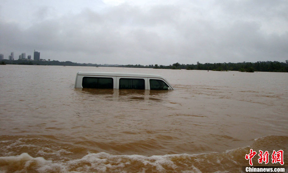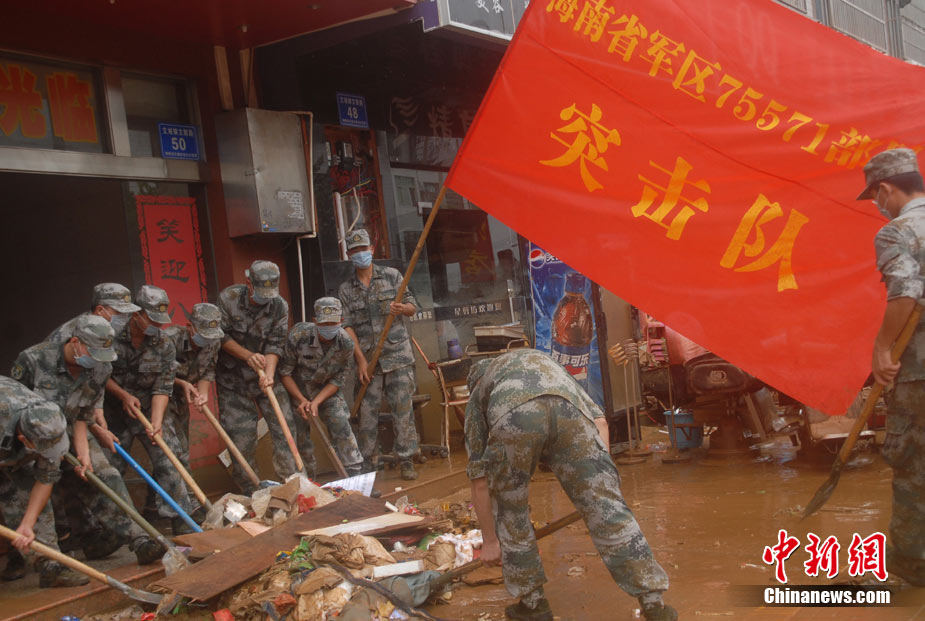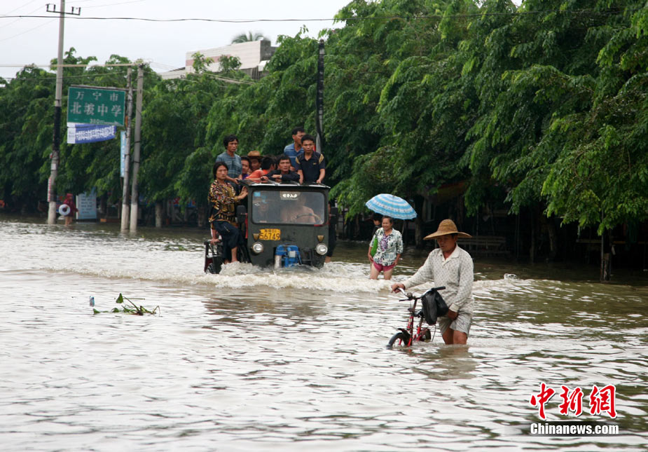10月8日,海南著名的僑鄉(xiāng)文昌市,當(dāng)?shù)匚渚俦眯⊥⑹忻襁\(yùn)送到安全地帶,連日的暴雨導(dǎo)致文昌城區(qū)全城街道被洪水淹沒(méi)。據(jù)被官兵解救出來(lái)的當(dāng)?shù)孛癖娊榻B,大水已經(jīng)淹至二樓。中新社記者 尹海明 攝