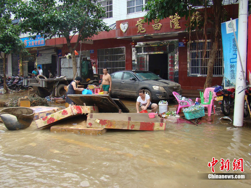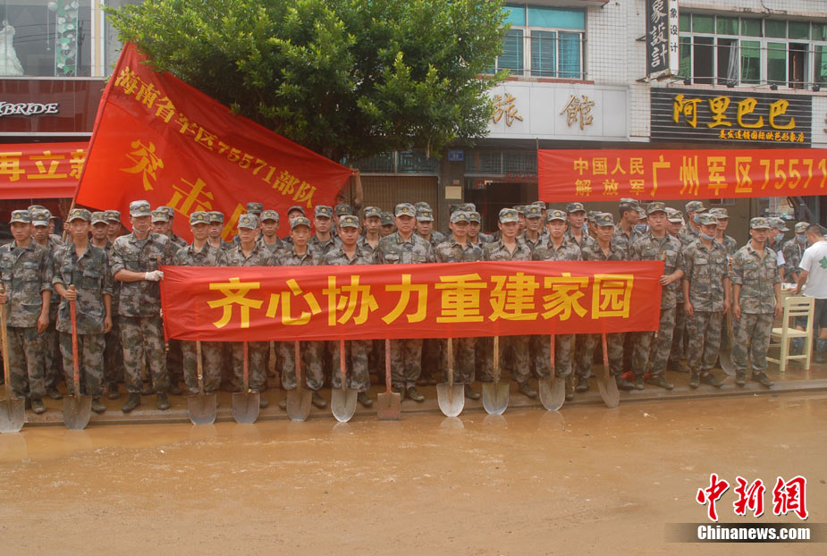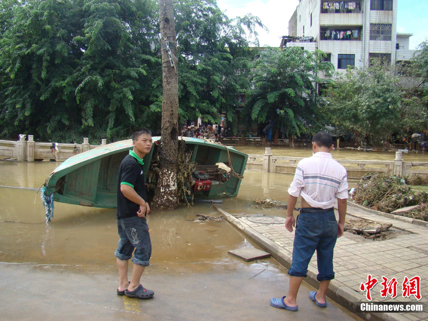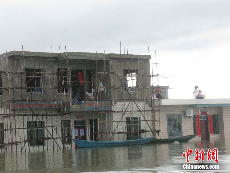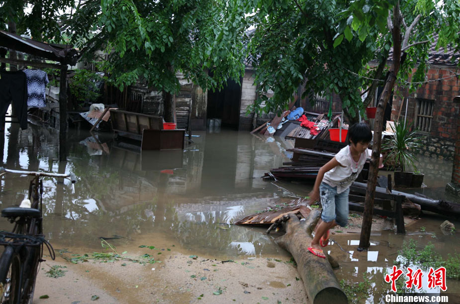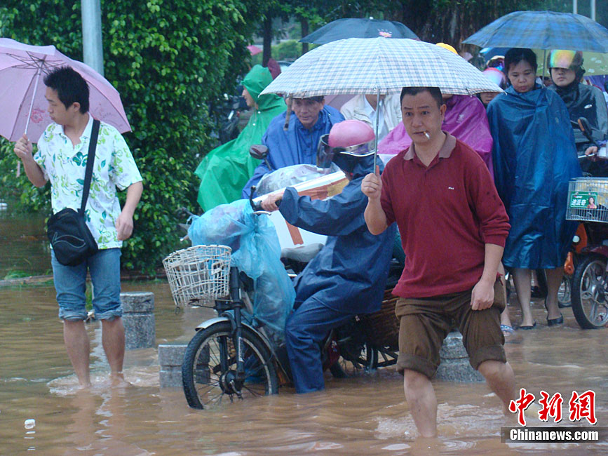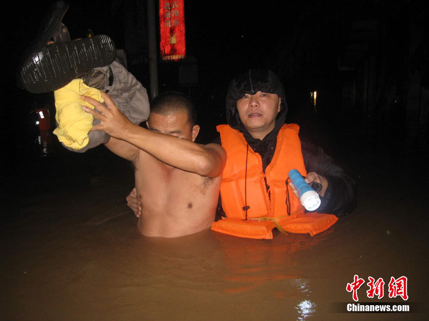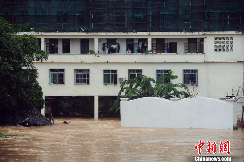 10月8日,海南著名的僑鄉(xiāng)文昌市,當(dāng)?shù)匚渚俦眯⊥⑹忻襁\(yùn)送到安全地帶,連日的暴雨導(dǎo)致文昌城區(qū)全城街道被洪水淹沒(méi)。據(jù)被官兵解救出來(lái)的當(dāng)?shù)孛癖娊榻B,大水已經(jīng)淹至二樓。中新社記者 尹海明 攝