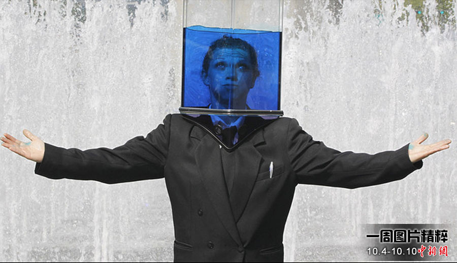 10月4日(周一),一名警務(wù)人員在首爾警員訓(xùn)練中心示范用頭撞碎多層石板。