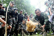 10月11日,中泰陸軍特種部隊反恐聯(lián)合訓(xùn)練交流野外生存技巧!巴粨-2010”中泰陸軍特種部隊反恐聯(lián)合訓(xùn)練于10月6日至20日在廣西壯族自治區(qū)桂林進(jìn)行。圖為展示用竹子制作的烤架。中新社記者 杜洋 攝