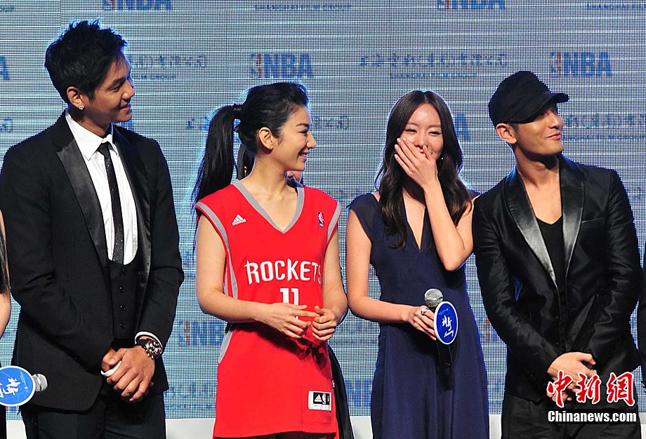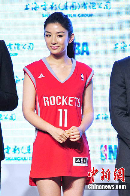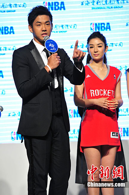 10月12日,上海電影集團聯(lián)手美國職業(yè)籃球協(xié)會(NBA)在京召開發(fā)布會,共同揭曉首部本土制作的NBA題材電影《神奇Amazing》的全明星陣容,六屆NBA冠軍得主科特·皮蓬、中國著名籃球明星易建聯(lián)、NBA全明星球員效力于奧蘭多魔術隊的德懷特·霍華德、丹佛掘金隊的卡梅羅·安東尼、現(xiàn)中國男子籃球隊球員王治郅等多名籃球明星,以及來自兩岸三地的人氣明星黃曉明、馮德倫、陳建州(黑人)、黃奕,以及韓國女星金雅中,美國男星埃里克·馬布斯將聯(lián)手出演影片。圖為在片中飾演拉拉隊長的黃奕身著鮮紅色火箭隊姚明11號球衣驚艷亮相。中新社記者 李學仕 攝
