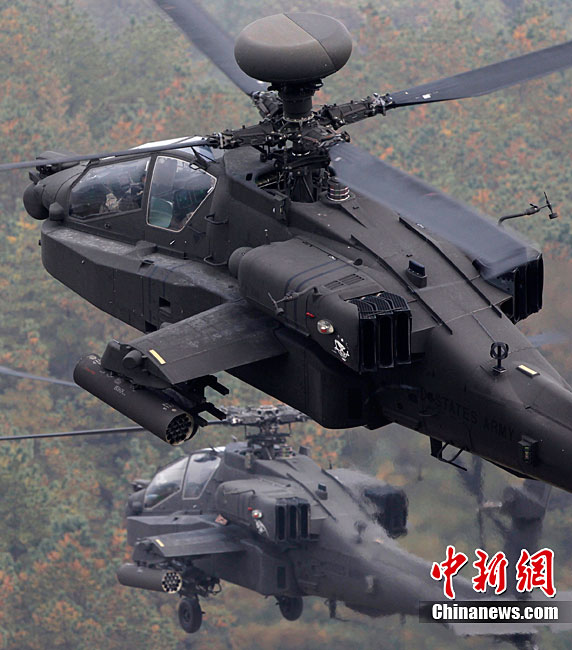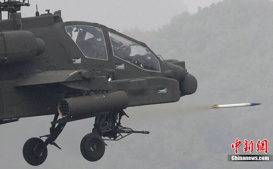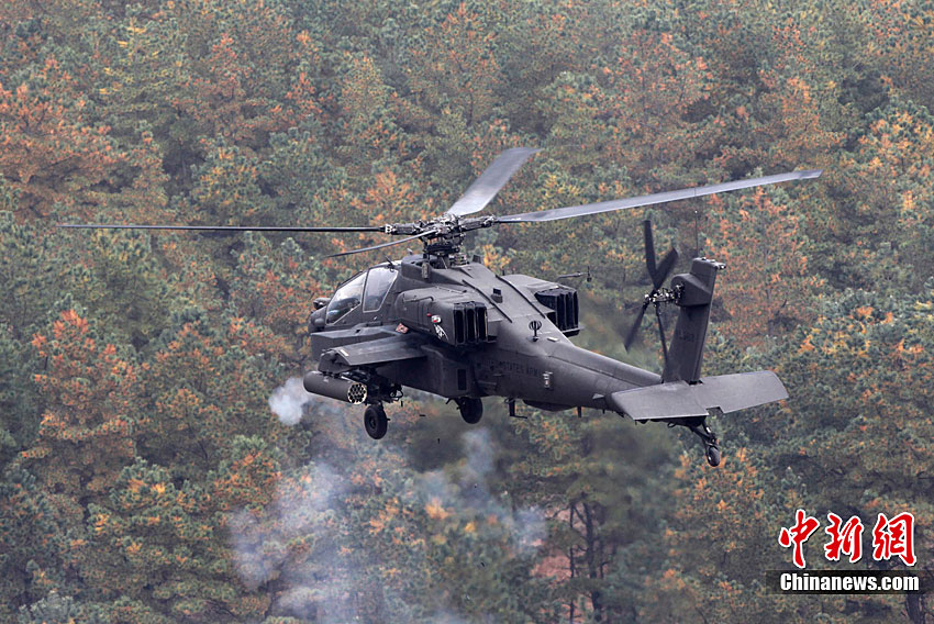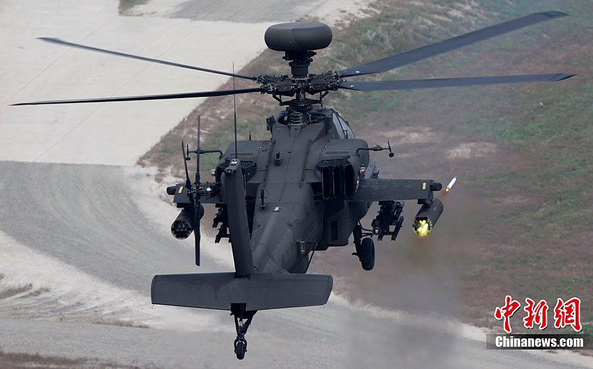 當?shù)貢r間10月13日,韓國在釜山附近海域開始為期兩天的防擴散聯(lián)合演習。此次演習由韓國軍隊主導,美國、日本等15個國家參加。其中,韓國、美國、日本、澳大利亞參與海上攔截演習。韓軍出動兩艘韓國型驅(qū)逐艦、兩艘登陸艦等艦艇。美國宙斯盾驅(qū)逐艦、日本4000噸級驅(qū)逐艦、澳大利亞P-3C巡邏機等參演。圖為10月13日,美國AH-64武裝直升機在韓國抱川進行防擴散聯(lián)合演習中進行射擊。