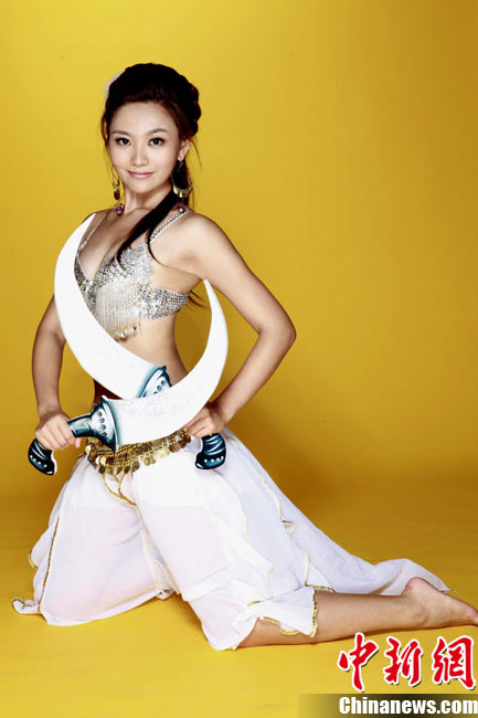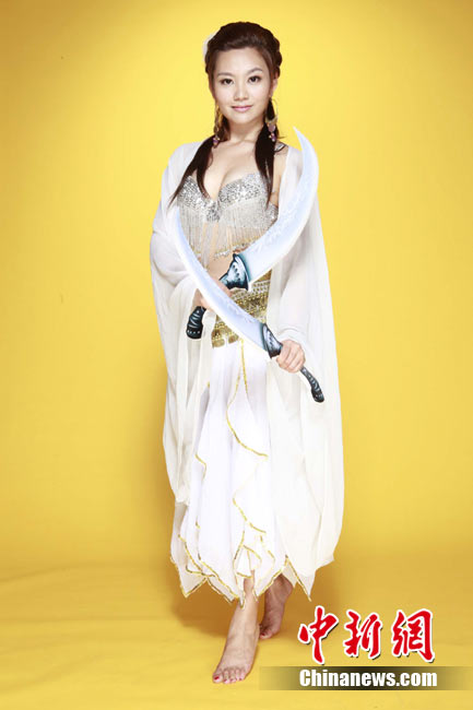 近日,足球?qū)氊悇⒙匂榕c動作巨星甄子丹合作代言的一款武俠題材網(wǎng)游拍攝廣告片。劉聞雯低胸性感,盡顯熱辣身材。