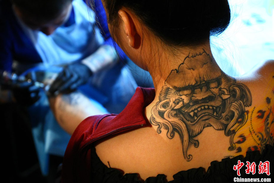 10月15日,中國(guó)(國(guó)際)紋身藝術(shù)節(jié)在北京798藝術(shù)區(qū)開幕,這是國(guó)內(nèi)舉辦的首次國(guó)際性紋身藝術(shù)節(jié)。本屆紋身展會(huì)的宗旨是:“讓藝術(shù)向紋身靠攏”,為國(guó)內(nèi)外紋身師提供一個(gè)公平、公正的同臺(tái)獻(xiàn)藝和交流的平臺(tái)。來自美國(guó)、澳大利亞、新西蘭等國(guó)以及中國(guó)許多省市的紋身師現(xiàn)場(chǎng)展示富有個(gè)性、創(chuàng)意十足的紋身作品。藝術(shù)節(jié)將持續(xù)至17日。 中新社發(fā) 富田 攝