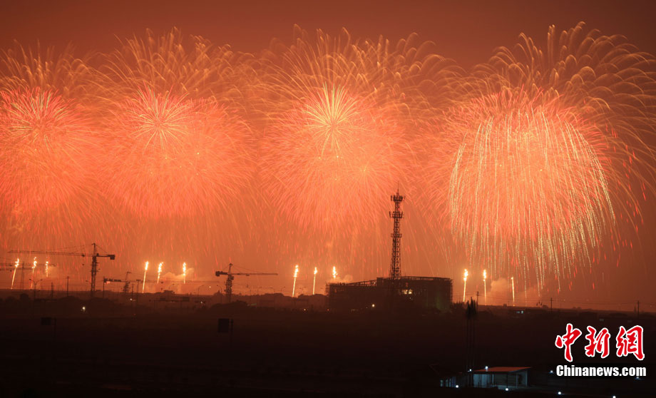 10月16日,作為2010杭州國際煙花大會分會場,璀璨旖旎的煙花再次在運河上空綻放。16萬發(fā)煙花持續(xù)近40分鐘的燃放再次點亮千年運河的夜空,上演一場夢幻般的視覺盛宴。中新社發(fā) 夏毅 攝