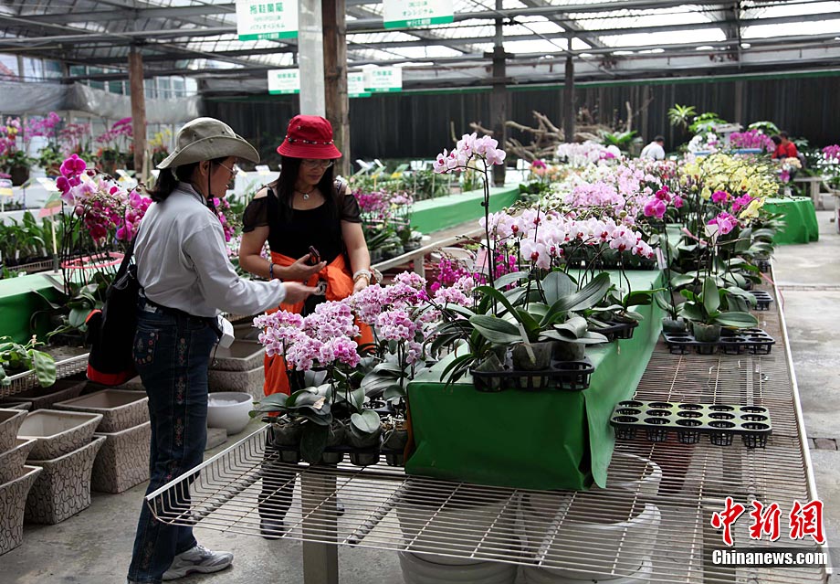 近日,記者隨參加臺灣觀光年會的臺灣區(qū)觀光協(xié)會聯(lián)合會成員行腳彰化縣鄉(xiāng)鎮(zhèn)景點(diǎn),在地名特產(chǎn)店。圖為彰化縣大村鄉(xiāng)的臺大蘭園展售部。臺大蘭園成立于1981年,是最早將臺灣蝴蝶蘭出口到美國的公司之一,現(xiàn)為大村鄉(xiāng)知名景點(diǎn)。中新社記者 陳立宇 攝