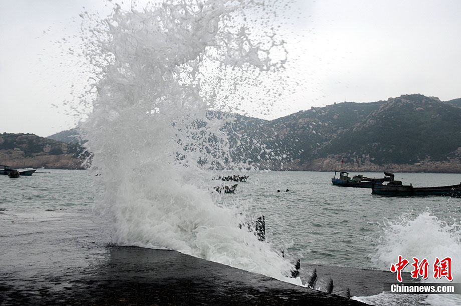 10月20日,在今年第13號超強臺風“鲇魚”的影響下,浙江省溫州市南麂島海面風力增強到9--10級,岸邊卷起巨浪。駐守該島的南麂邊防派出所迅速出動抗臺應急分隊,加強海邊巡邏檢查,及時勸阻觀浪游客遠離危險地帶。圖片來源:cnsphoto 吳水斌 攝
