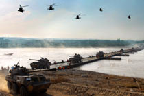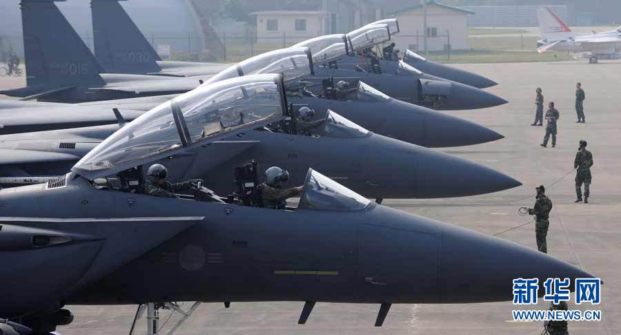 韓國與美國空軍于本月15日開始在朝鮮半島西部空域舉行代號(hào)為“最響雷鳴”的“常規(guī)空軍演練”,演習(xí)歷時(shí)8天,旨在加強(qiáng)兩國空軍相互協(xié)同能力。這是韓美今年夏天以來就“天安”號(hào)事件實(shí)施的系列聯(lián)合軍演之一。250多名飛行員將參加演習(xí)。包括韓國空軍F—15K和KF—16系列戰(zhàn)斗機(jī)、美國空軍F—16型“戰(zhàn)隼”式和KC—135型“同溫層油船”式在內(nèi),大約50架戰(zhàn)斗機(jī)參加演習(xí)。樸真熙 攝