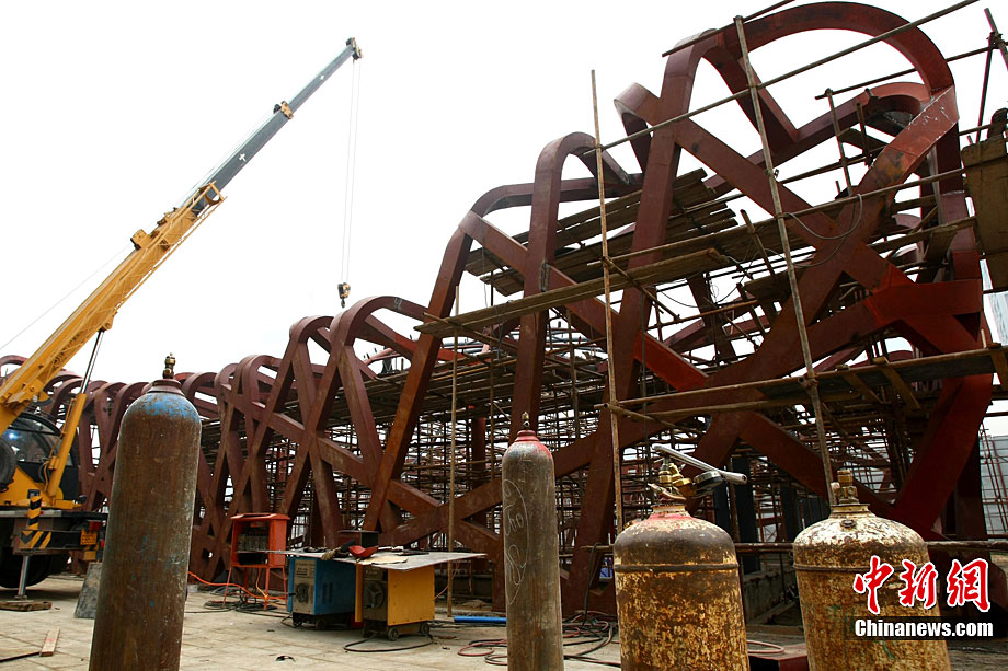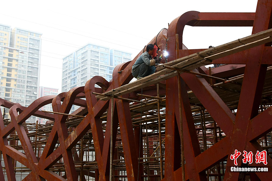 近日,北京通惠河南岸的慶豐公園東側(cè),一座面積約300平方米、三層樓高的建筑,以其酷似國(guó)家體育場(chǎng)“鳥(niǎo)巢”的造型吸引了不少人的目光。據(jù)悉,該建筑是正在建設(shè)中的通惠時(shí)尚國(guó)際廣場(chǎng)的配套建筑。10月20日上午,國(guó)家體育場(chǎng)的工作人員已到現(xiàn)場(chǎng)取證,將研判是否涉嫌侵權(quán)。中新社記者 富田 攝