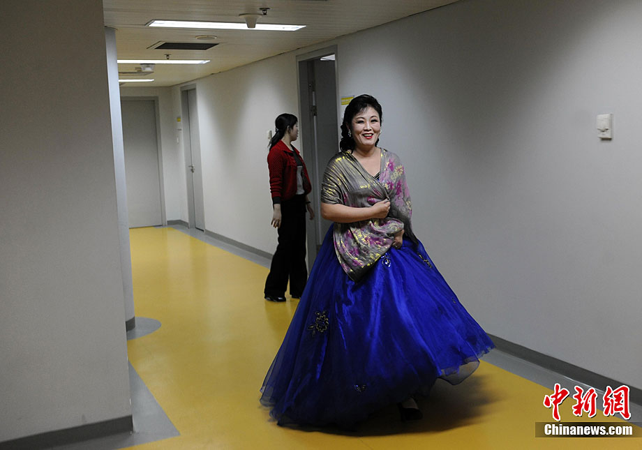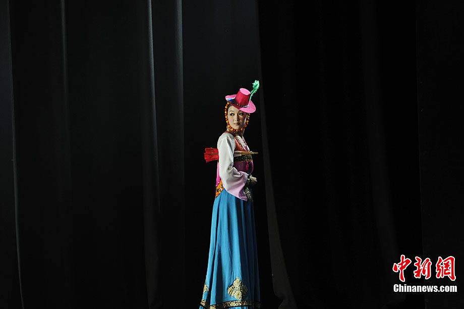 10月22日晚,朝鮮平壤藝術(shù)團在國家大劇院進行彩排。10月23至24日,朝鮮平壤藝術(shù)團將在北京國家大劇院歌劇院上演歌舞晚會《怒放的金達萊》。此次來訪的朝鮮平壤藝術(shù)團,是朝鮮政府專門為參加上海世博會朝鮮館日組建的表演團體,該團成員來自朝鮮最重要的三大藝術(shù)團體:萬壽臺藝術(shù)團、血海藝術(shù)團和朝鮮民族國立藝術(shù)團,參演人員薈萃了朝鮮最優(yōu)秀的藝術(shù)家。演員們將身著獨具特色的民族服飾,表演《長鼓舞》、《拾貝姑娘》、《鈴鐺舞》、《三人舞》等傳統(tǒng)舞蹈。中新社記者 劉震 攝