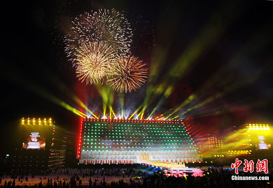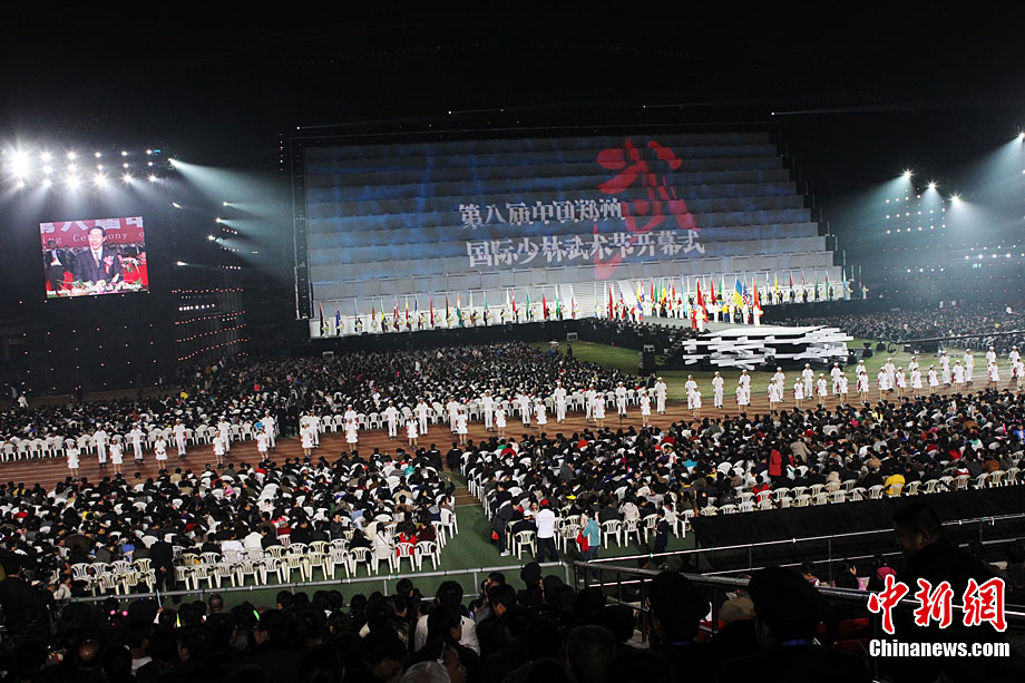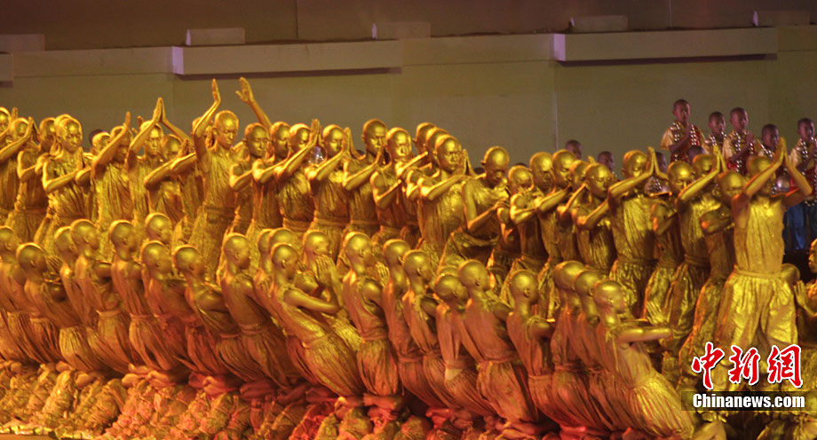 10月22日晚,“金身和尚”在國(guó)際少林武術(shù)節(jié)開(kāi)幕式上表演。當(dāng)日,第八屆中國(guó)鄭州國(guó)際少林武術(shù)節(jié)在鄭州開(kāi)幕。來(lái)自美國(guó)、法國(guó)、日本、及港澳臺(tái)等近60個(gè)國(guó)家和地區(qū)的1200名選手將在武術(shù)節(jié)期間同臺(tái)競(jìng)技。中新社記者 王中舉 攝