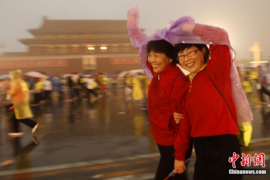 10月24日8時,2010年北京馬拉松正式鳴槍,所有參賽運動員在淅淅瀝瀝的小雨中從天安門廣場出發(fā)。今年的北京馬拉松正式與國際接軌,與往年不同的特點是北京馬拉松賽、全國馬拉松錦標賽以及首都高校馬拉松賽“三賽合一”,并采取一次發(fā)槍制,所有組別的選手都同時出發(fā)。中新社記者 富田 攝