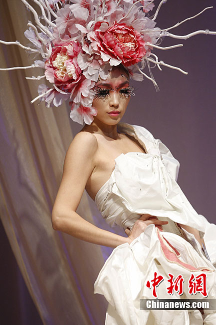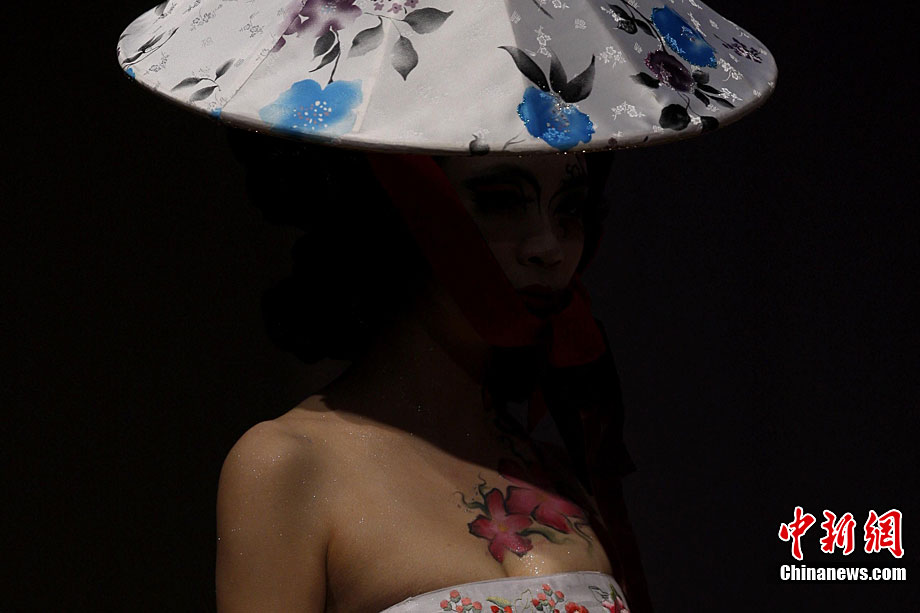 10月25日晚,第六屆“美麗盛典”中國國際時裝周彩妝造型設(shè)計大賽在北京798藝術(shù)區(qū)舉行。本屆“美麗盛典”大賽以“都市”為主題,來自中國和韓國的12位造型師與36位模特合作展示了精彩彩妝造型。中新社記者 盛佳鵬 攝