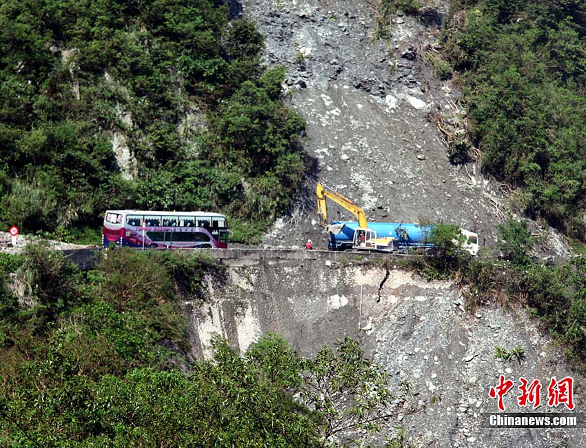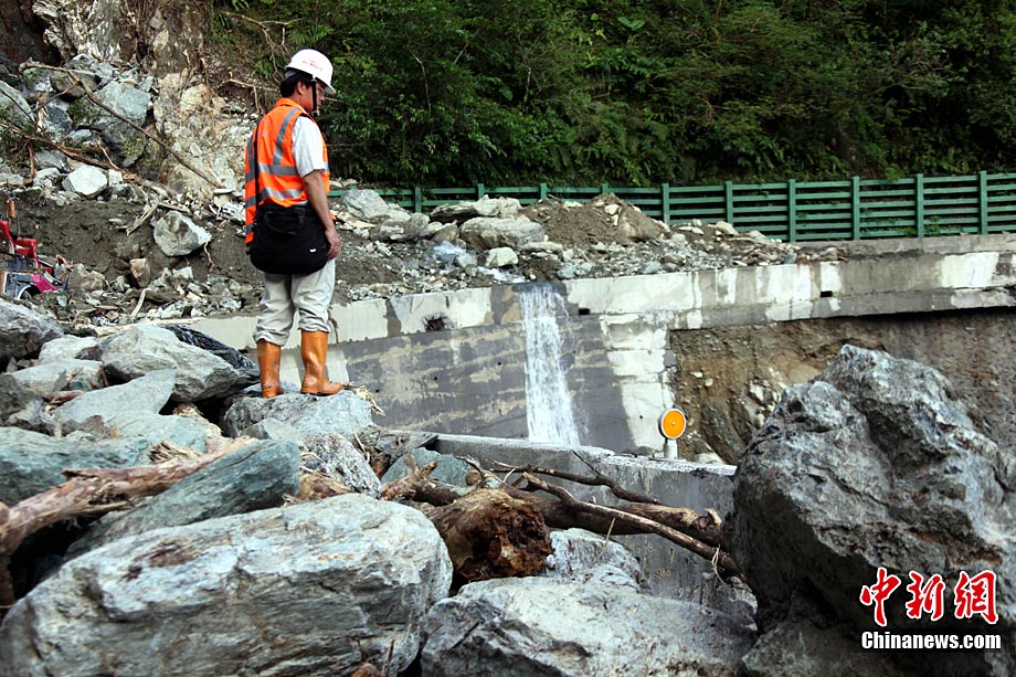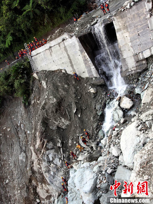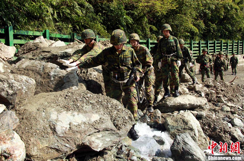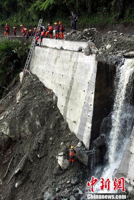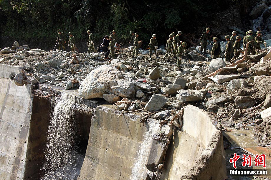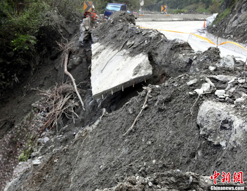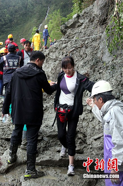 臺灣蘇花公路塌方事故已逾5天,事故發(fā)生的宜蘭縣一帶26日持續(xù)大雨。然而對失蹤者(包括18名大陸游客和2名大陸領(lǐng)隊(duì))的海陸空三路搜索仍在持續(xù),F(xiàn)場搜索進(jìn)展艱難,其間并發(fā)生一名搜救隊(duì)員被砸傷的情況。 中新社記者 王健 攝