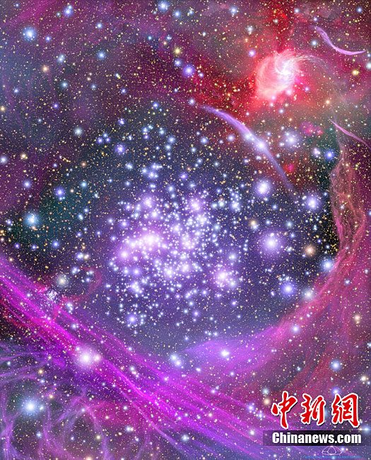 美國(guó)宇航局(NASA)近日公布了銀河系深處拱門星團(tuán)的最新藝術(shù)效果圖。改圖根據(jù)哈勃太空望遠(yuǎn)鏡和一些地面望遠(yuǎn)鏡拍攝的圖像描繪而成。拱門星團(tuán)存在于銀河系中心黑洞附近,包含有大約3萬(wàn)個(gè)類似于太陽(yáng)的恒星,而且該恒星團(tuán)的密度在銀河系所有已知同類天體構(gòu)造中是最大的。據(jù)測(cè)算,Arches的直徑約為三光年,其內(nèi)部天體密度超過(guò)太陽(yáng)系約一百萬(wàn)倍。