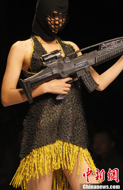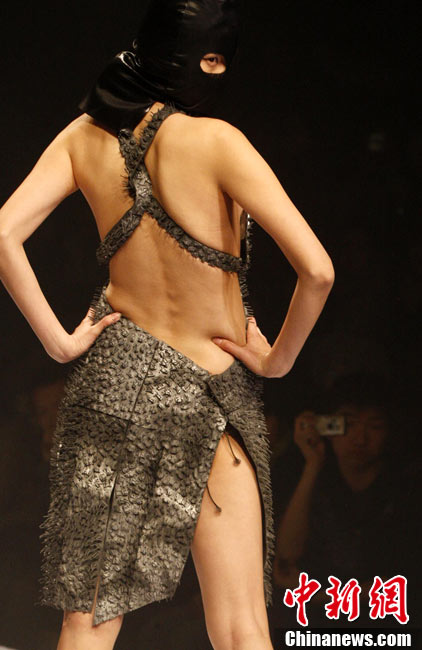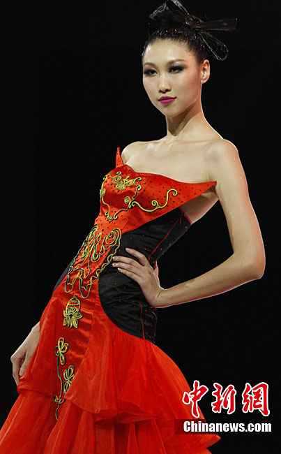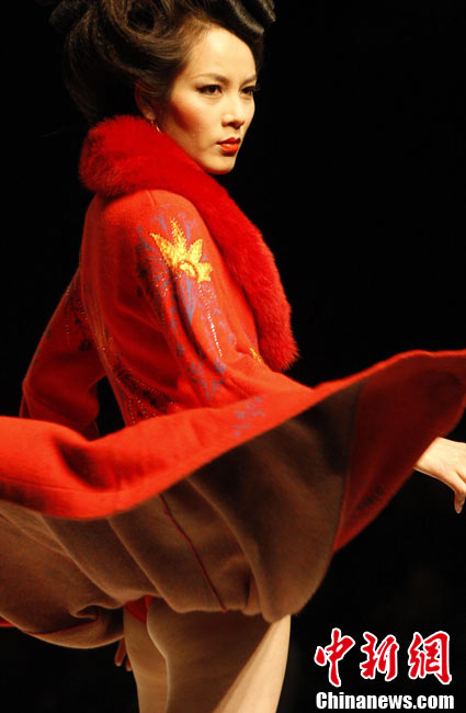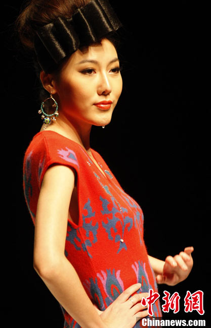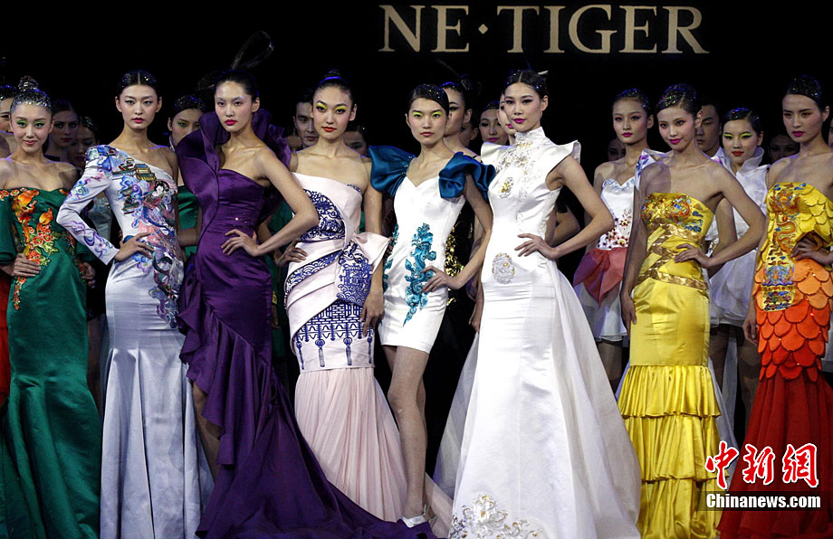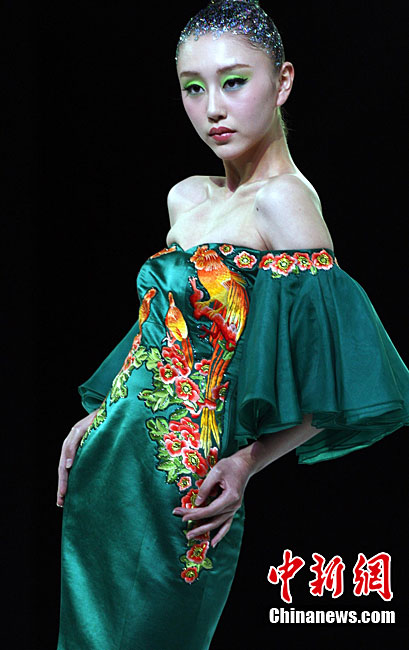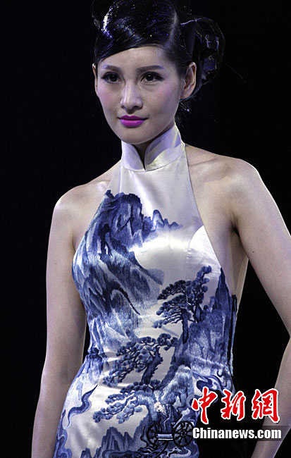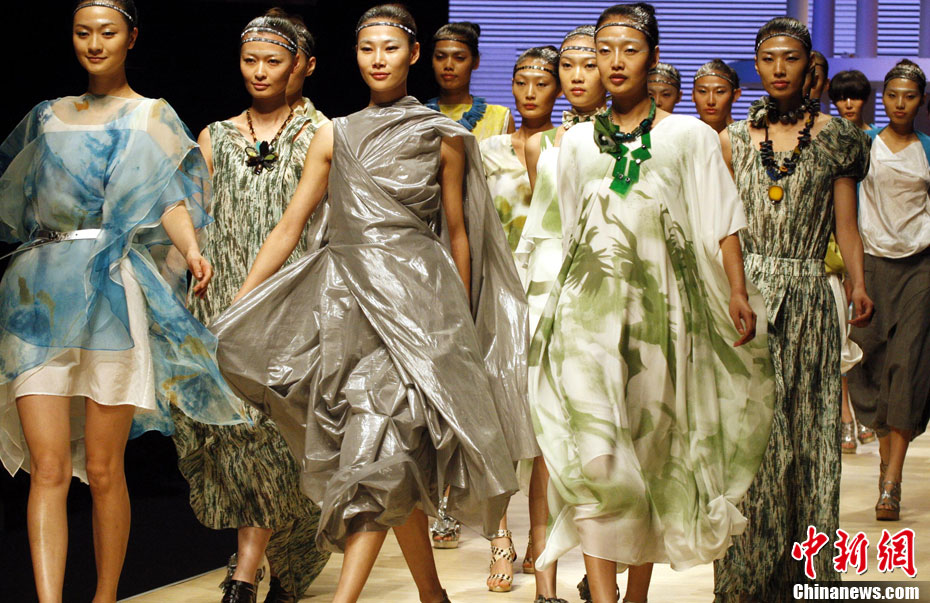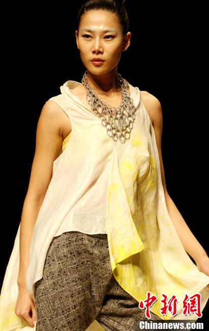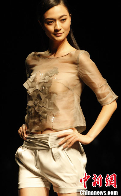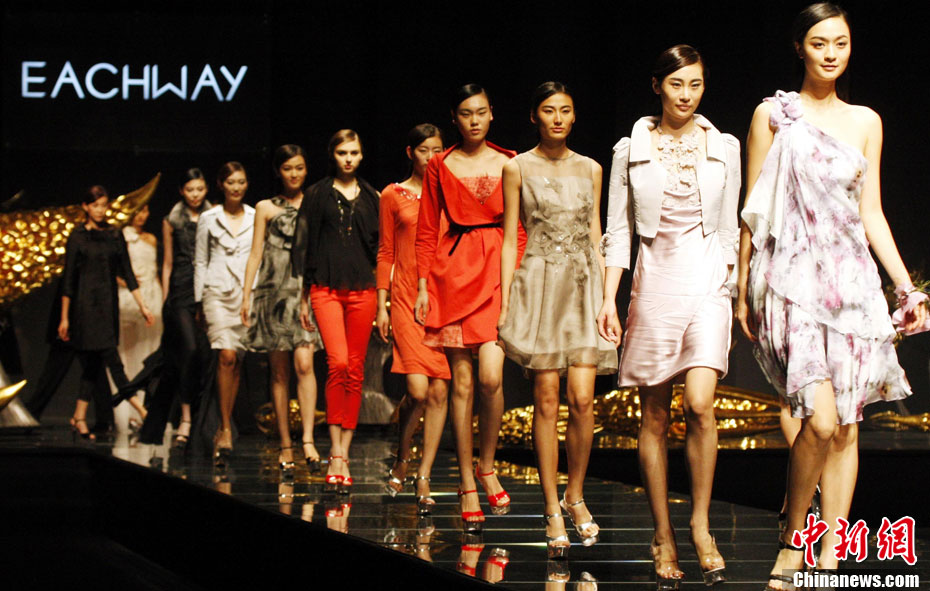 10月26日晚,正在北京舉行的中國國際時裝周上演EACHWAY·趙卉洲2011春夏時裝發(fā)布會,該作品風(fēng)格簡約自然、清新優(yōu)雅、大氣內(nèi)斂,贏得眾多職場女性的青睞。2011春夏系列包含三大主題:“深海精靈”(藍(lán)綠色系)、“夢游幻境”(粉紫色系)、“雙色游戲”(米咖色系),圍繞摩登柔美和經(jīng)典的花卉印花兩大元素展開。中新社記者 錢興強(qiáng) 攝