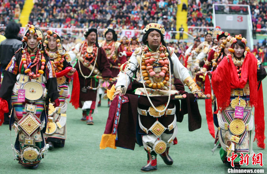 10月27日,四川甘孜藏族自治州舉行慶典活動慶祝建州60周年。甘孜藏族自治州成立于1950年11月24日,是新中國成立后建立的第一個專區(qū)級少數(shù)民族自治州。甘孜位于四川省西部,青藏高原東南緣,地處川、滇、藏、青交界處,轄18個縣,325個鄉(xiāng)(鎮(zhèn)),總?cè)丝?02萬,藏族人口占80%以上。圖為慶典現(xiàn)場。中新社發(fā) 劉忠俊 攝
