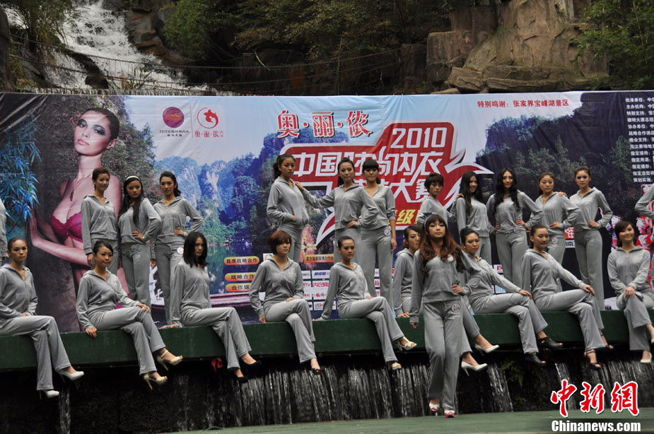 “2010中國(guó)時(shí)尚內(nèi)衣模特大賽”晉級(jí)賽10月28日下午在世界自然遺地產(chǎn)地——張家界武陵源寶峰湖風(fēng)景區(qū)開賽。來(lái)自北京、上海等地的72名內(nèi)衣佳麗一展身姿,爭(zhēng)奪前30名決賽資格。11月5日,“奧麗儂杯·2010中國(guó)時(shí)尚內(nèi)衣模特決賽暨頒獎(jiǎng)盛典”將在張家界魅力湘西國(guó)際文化廣場(chǎng)火熱上演。吳勇兵 唐純禮攝