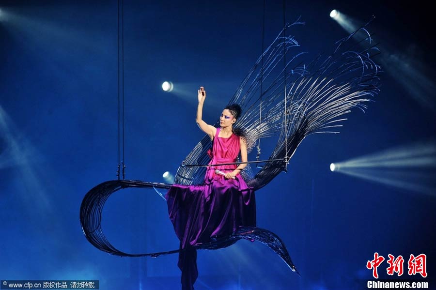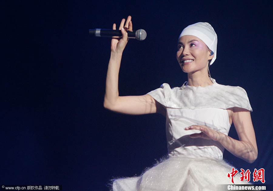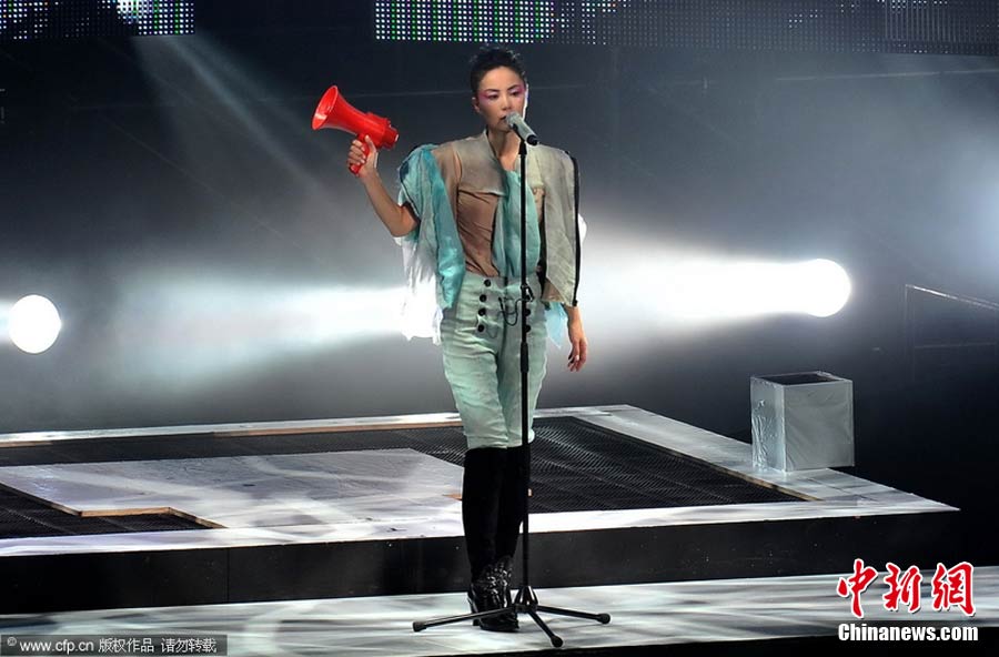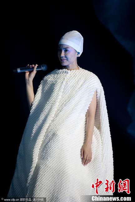 10月29日晚,暌違六年,華語(yǔ)樂(lè)壇天后級(jí)人物王菲在自己的家鄉(xiāng)——北京,再次開(kāi)嗓,為歌迷奉獻(xiàn)出一場(chǎng)精彩絕倫的演唱會(huì)。整場(chǎng)演出,王菲在造型上十分搶眼,不論最開(kāi)始的一身雪白,脫去外套后的蓬蓬裙顯得清新脫俗,或是中間段的摩登女郎裝扮、騎士裝、拖地長(zhǎng)禮服,都令她展現(xiàn)不同韻味。圖片來(lái)源:CFP視覺(jué)中國(guó)