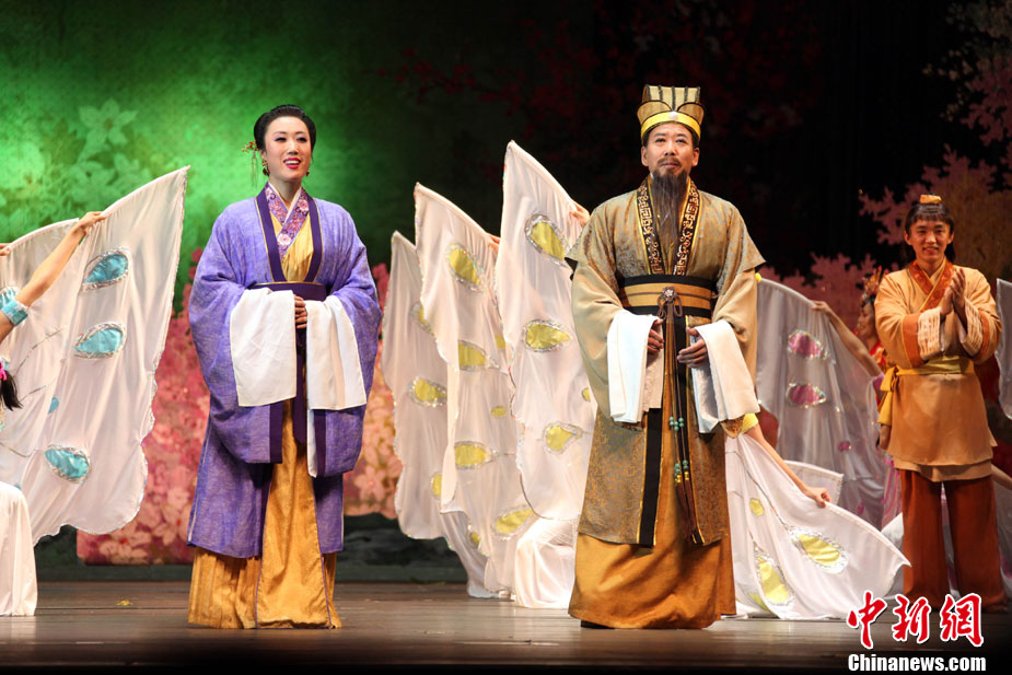 10月24日下午,朝鮮平壤大劇場(chǎng)上演其新排演的歌劇《梁山伯與祝英臺(tái)》。 中新社記者 孫自法 攝