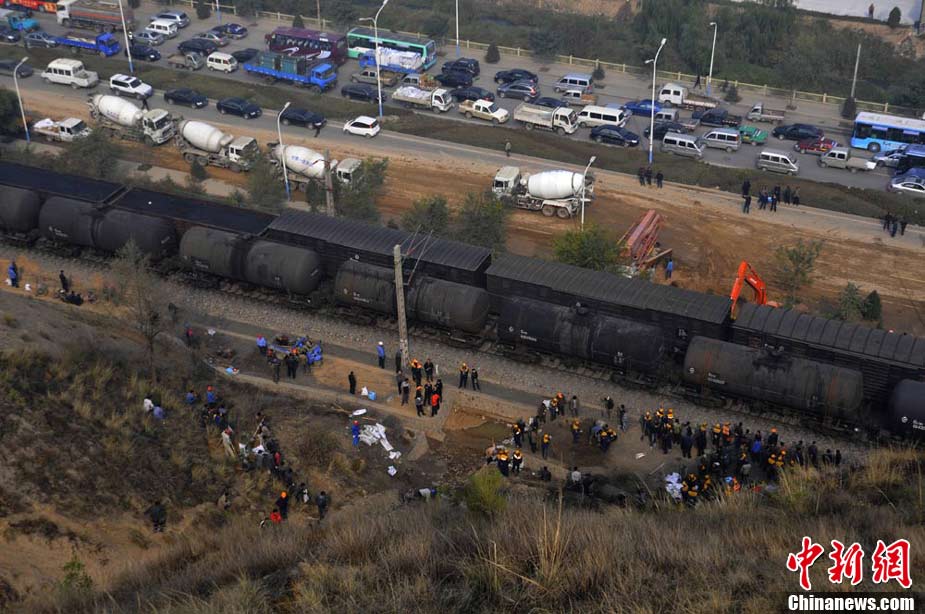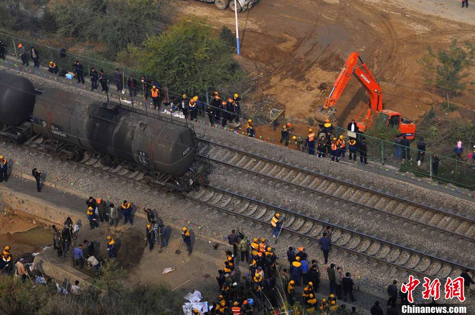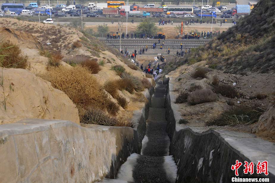 10月30日早晨,蘭新鐵路線遭水害遇險(xiǎn)情,蘭新線K8+500米處南側(cè)山上,有廢水從山體沖下,將蘭新線上下行路基沖穿,嚴(yán)重危及行車安全。根據(jù)鐵路部門的測(cè)量,上行路基一側(cè)被沖塌形成了50立方米的坑,下行路基一側(cè)沖塌形成的坑有24立方米。蘭州鐵路局等組織7臺(tái)大型機(jī)械,共有700多人投入搶險(xiǎn)。經(jīng)全力奮戰(zhàn),11時(shí)整,蘭新線下行線路開通;11時(shí)15分,蘭新線上行線路開通。楊艷敏 攝