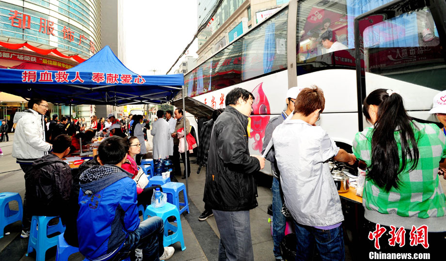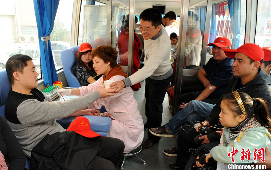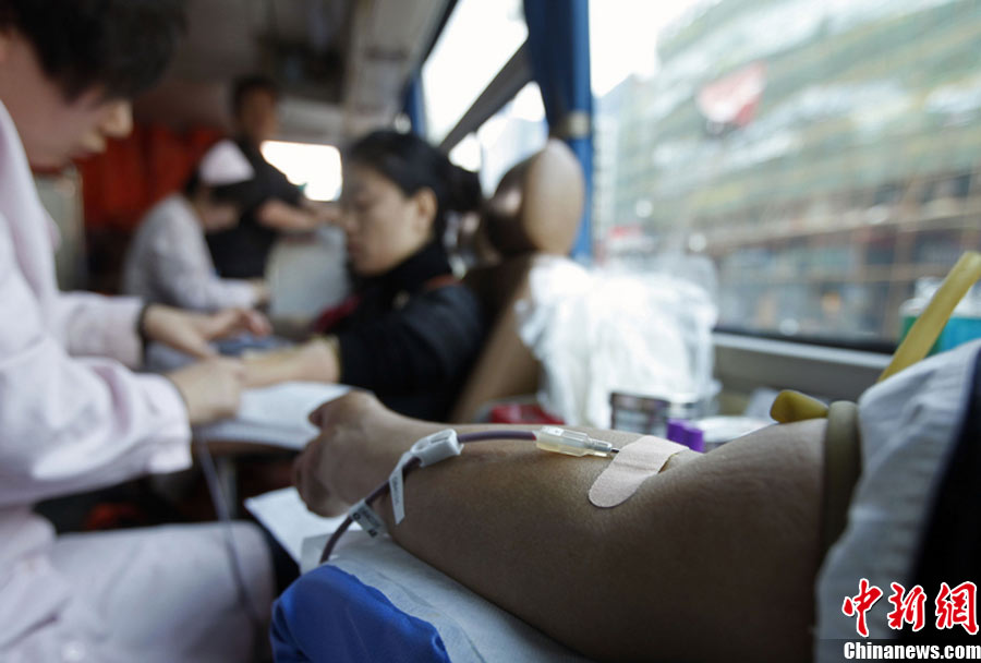 10月30日,各地市民踴躍無償獻(xiàn)血,應(yīng)對(duì)“血荒”。圖為長春市民在義務(wù)獻(xiàn)血車上獻(xiàn)血,應(yīng)對(duì)近日出現(xiàn)的“血荒”。圖片來源:CFP視覺中國