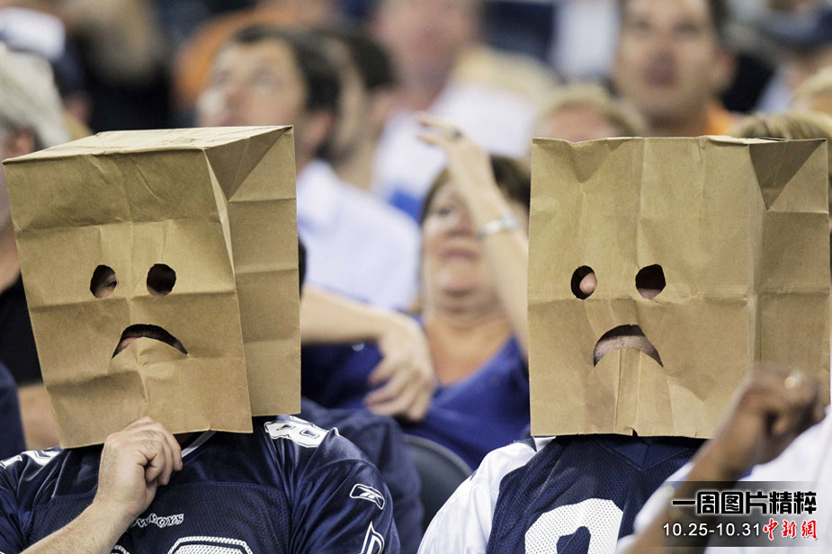 10月25日(周一),美國田納西州阿靈頓舉行的2010-11賽季NFL常規(guī)賽的最后一場比賽中,達拉斯牛仔隊以35-41的比分輸給紐約巨人隊。圖為觀看比賽的達拉斯牛仔隊球迷。