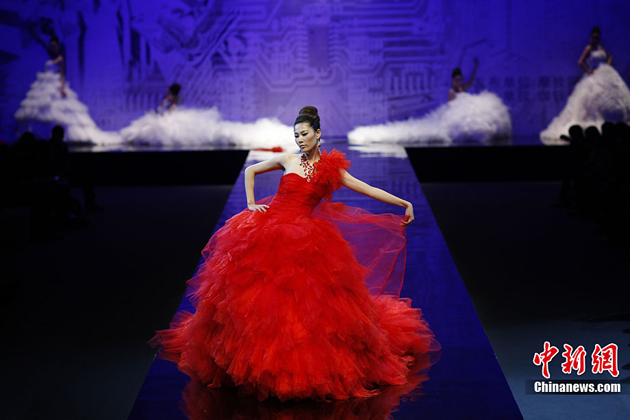 10月31日晚,“東方夏娃”托尼、李當岐、張肇達時裝藝術(shù)秀在北京舉行,這場秀是由3位在文化藝術(shù)領(lǐng)域幾乎沒有“交集”的大師級人物共同主創(chuàng),他們是國內(nèi)知名教育學者李當岐教授、英國頂級雕塑家托尼、杰出服裝設計師張肇達。中新社記者 盛佳鵬 攝