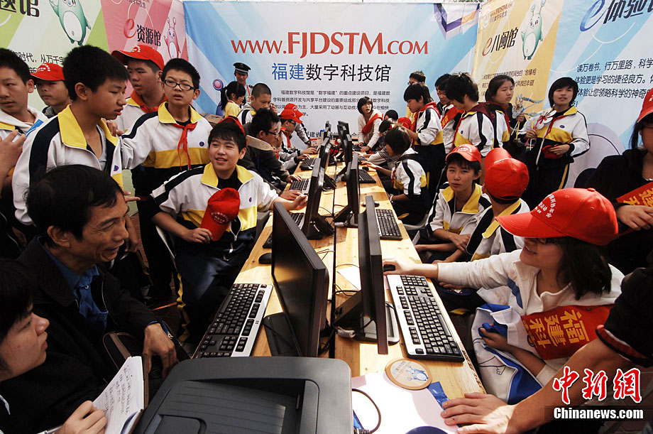 11月2日,福州科普愛好者與來自臺(tái)灣的機(jī)器人下棋。當(dāng)日,海峽兩岸科普嘉年華活動(dòng)在福州舉行,30多位臺(tái)灣科普專家攜15項(xiàng)臺(tái)灣科技成果到場,與福州民眾一起互動(dòng)。中新社記者 王東明 攝