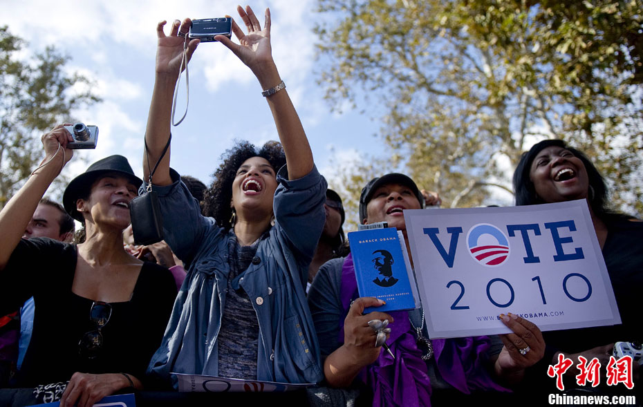 如果說美國政治好比一列由總統(tǒng)駕駛、國會掌舵和最高法院后廂督導(dǎo)的政治列車,中期選舉就好比四年期間的一次“靠站檢查”或者“停車加油”。11月舉行的中期選舉,是自2008年總統(tǒng)大選后“驢象之爭”的第一次政治對決。美國國會眾議院有435個席次,眾議員每兩年改選一次,今年全部改選。參議員則是每6年改選一次,每兩年改選三分之一。今年有36個參議院議席改選。圖為奧巴馬在克利夫蘭州大學(xué)發(fā)表演講。