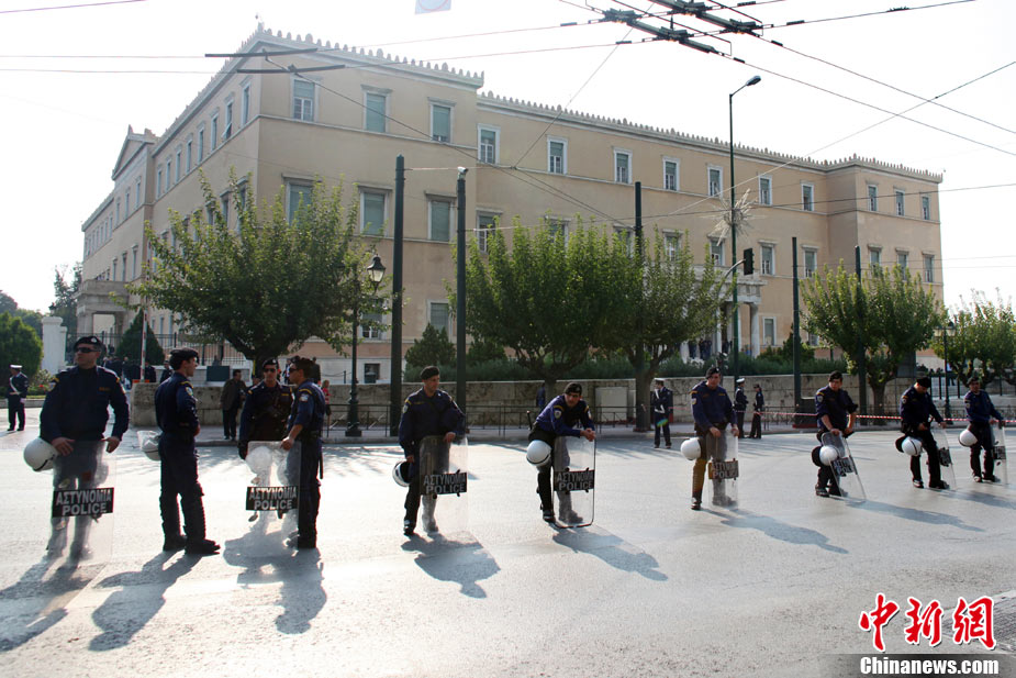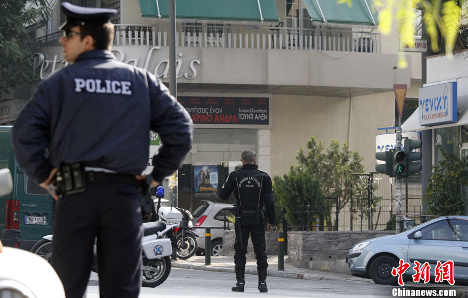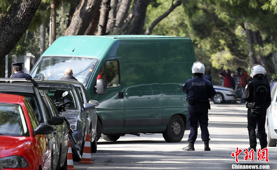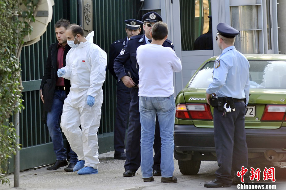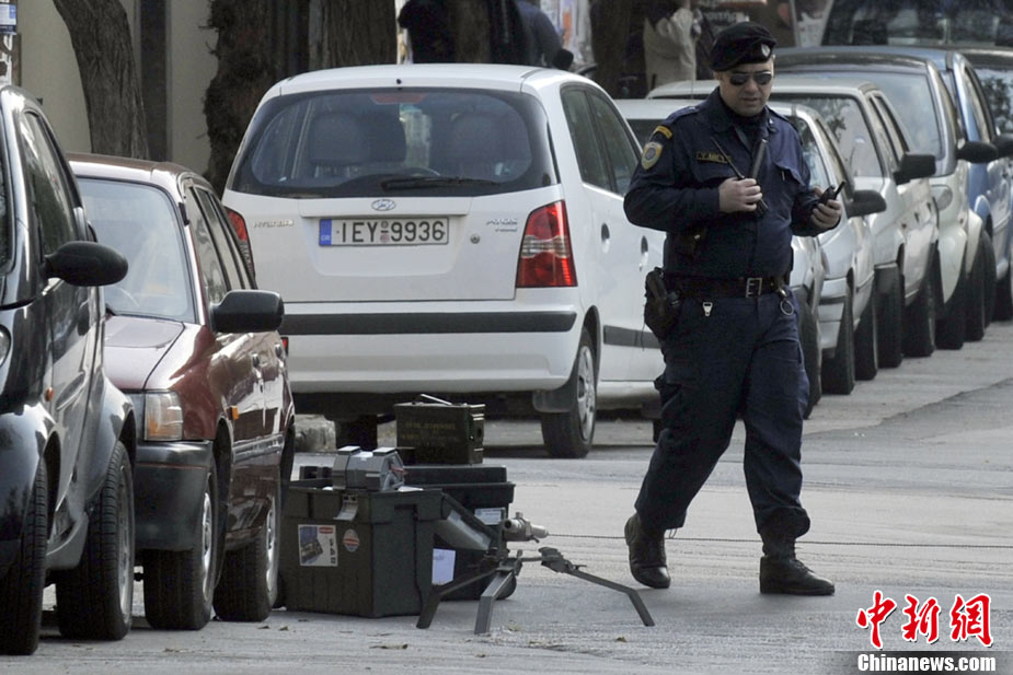 希臘首都雅典2日共發(fā)生5次小型爆炸事件,但沒有造成人員傷亡。瑞士、俄羅斯等國駐希臘大使館2日先后發(fā)生爆炸,另外希臘警方在議會、保加利亞使館與一家旅游公司門前分別引爆了3枚郵包炸彈。圖為在俄羅斯使館門前防爆人員在處理現(xiàn)場。