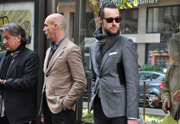 街頭男裝更易學(xué) 跟著鏡頭搭圍脖T臺(tái)造型那是作秀呢!生活中要是那么穿,肯定嚇的人對(duì)你指指點(diǎn)點(diǎn)、品頭論足!街頭街拍才是男人最好的拷貝對(duì)象!通過Tommy Ton的鏡頭為我們捕捉時(shí)尚秀場(chǎng)上的型男們圍脖經(jīng)!圖片來源:新華網(wǎng)