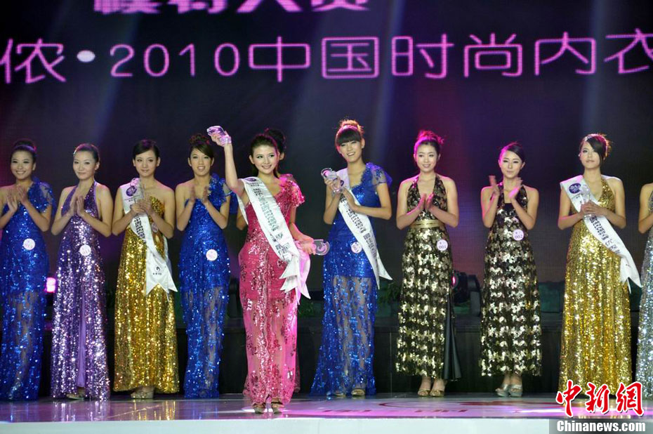 11月5日,“2010中國時尚內(nèi)衣模特決賽暨頒獎盛典”在湖南張家界武陵源風(fēng)景區(qū)魅力湘西國際文化廣場激情上演。賽事以T臺內(nèi)衣 秀為主體內(nèi)容貫穿全場,結(jié)合VCR及現(xiàn)場表演等多元方式演繹“水晶之戀”、“魅影霓裳”等多個主題內(nèi)容。30強(qiáng)內(nèi)衣佳麗為觀眾奉獻(xiàn)了一場時尚性、大眾性、前瞻性的內(nèi)衣視覺盛宴。經(jīng)過最后角逐,來自武漢紡織大學(xué)的大三女生張恩摘得桂冠,張馨月、伍思賢分獲亞軍、季軍。中新社發(fā) 吳勇兵 攝