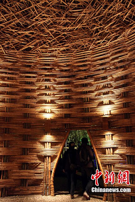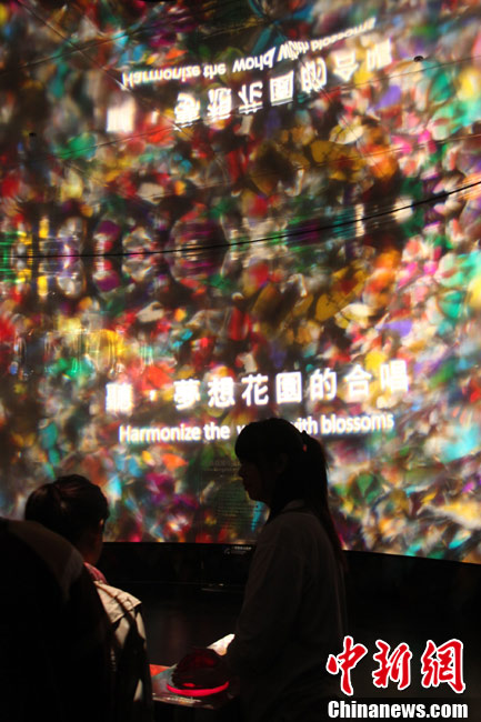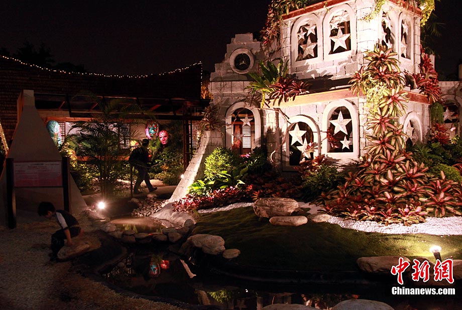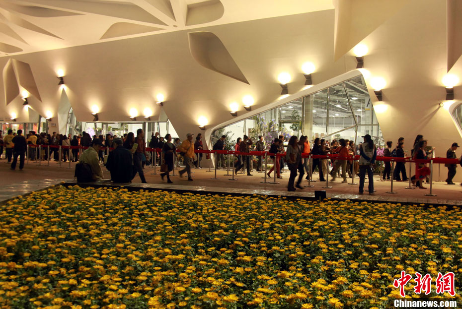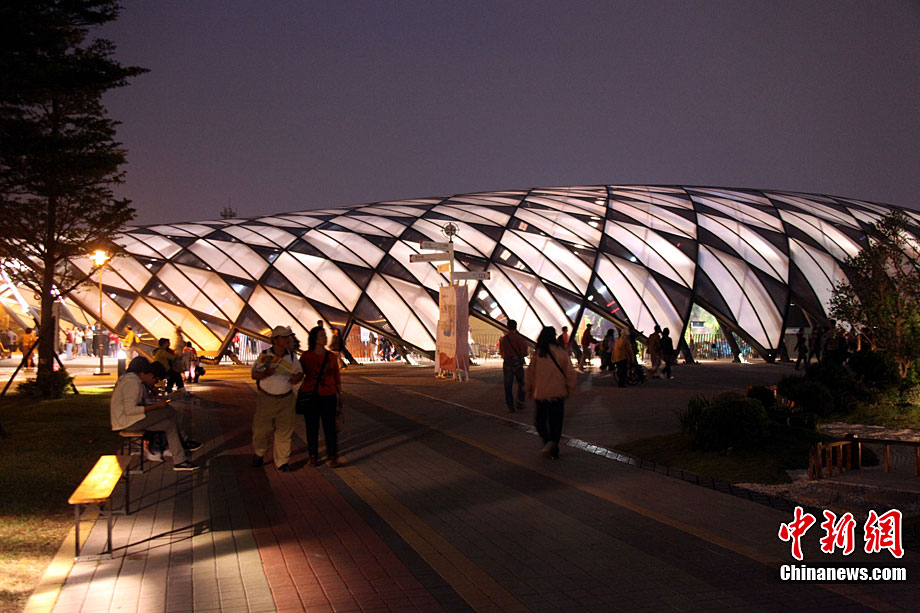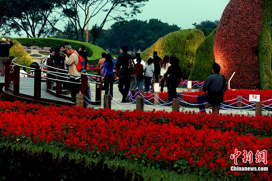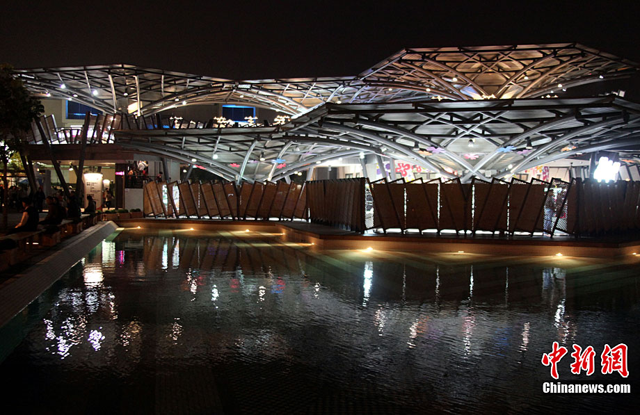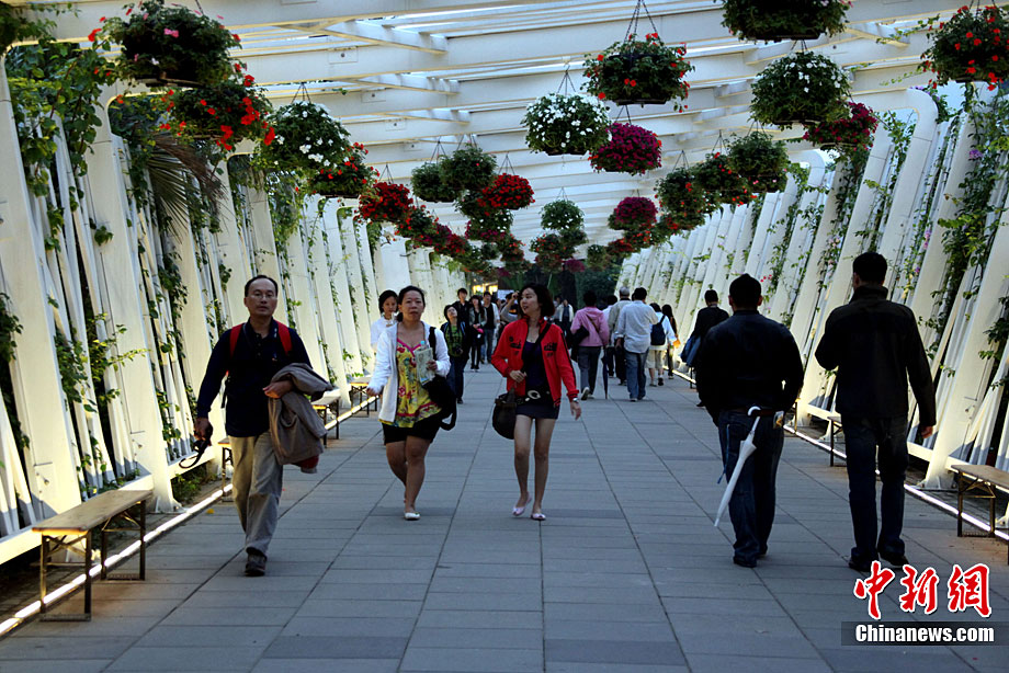 臺北花博會8日迎來第一個(gè)平日,但由于天氣轉(zhuǎn)好,入園客流依然可觀。直到入夜時(shí)分,花博園內(nèi)依然人流滾滾。光影花影人影樹影,構(gòu)成一道道賞心悅目的美麗夜景。圖為西班牙園藝家設(shè)計(jì)的蠶繭意境作品前,一對情侶激情擁吻。中新社記者 王健 攝