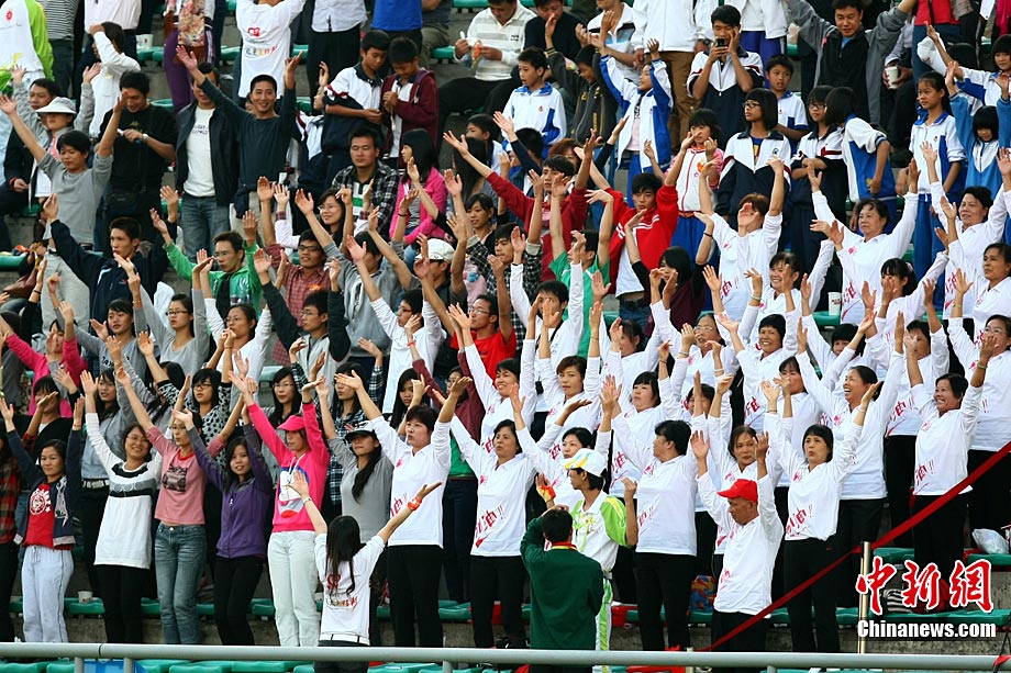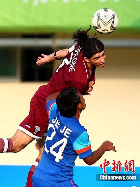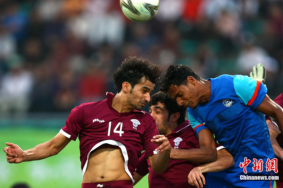 11月9日,第16屆亞運(yùn)會(huì)男足比賽展開(kāi)D組的一場(chǎng)爭(zhēng)奪,上屆亞運(yùn)會(huì)冠軍卡塔爾隊(duì)(紅)在先失一球的情況下實(shí)現(xiàn)逆轉(zhuǎn),最終以2:1戰(zhàn)勝印度隊(duì)。圖為觀(guān)眾為兩隊(duì)球員加油助威。中新社記者 富田 攝