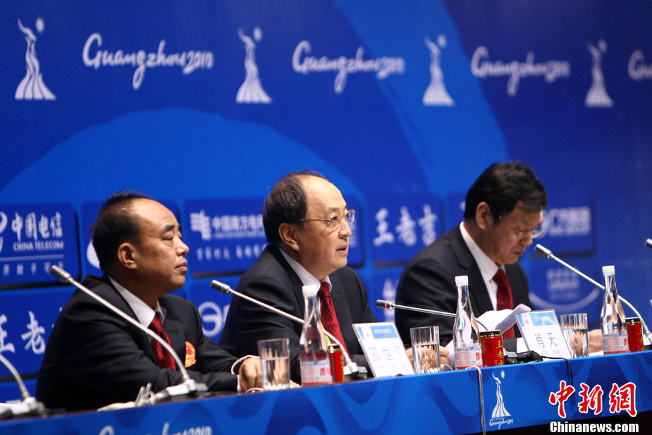 11月10日,中國體育代表團(tuán)新聞發(fā)布會(huì)在亞運(yùn)主媒體中心一號(hào)新聞廳召開。中國體育代表團(tuán)副團(tuán)長肖天就目前媒體記者關(guān)注的問題做了回答。 中新社記者 杜洋攝